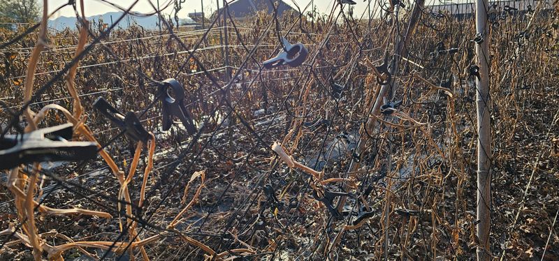 유인줄에 붙은 애호박줄기 제거하고나니 집게가 덩그라니