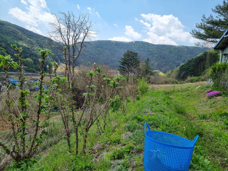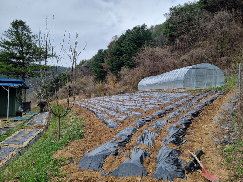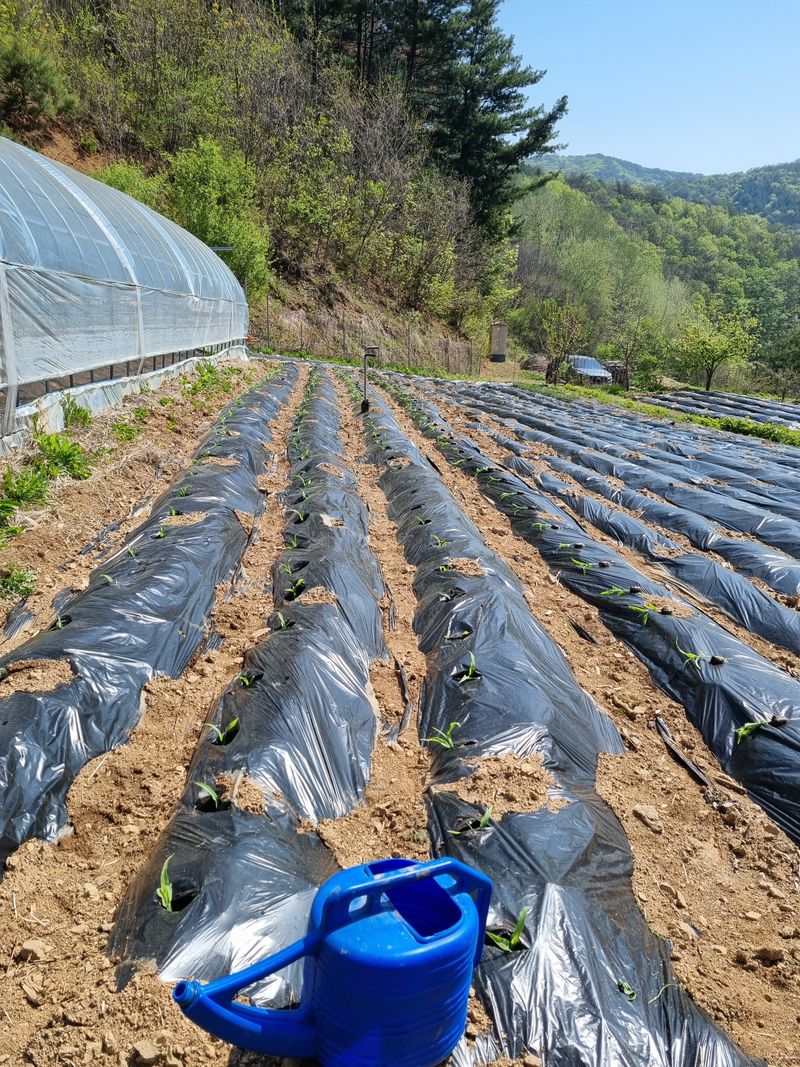 옥수수1차분 정식 480개 엄나무순 수확 대홍 복숭아꽃 지는시기라 살충제,살균제혼합살포함