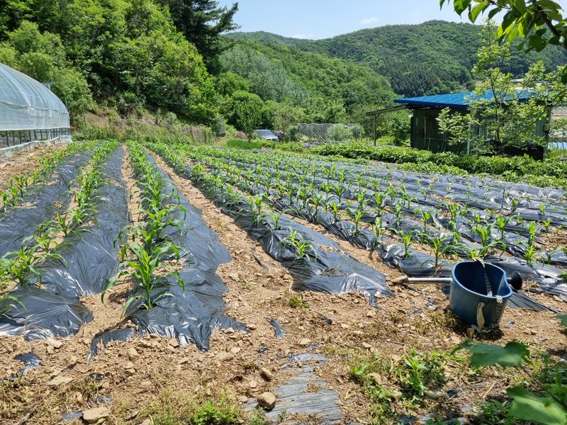 1차옥수수 수확 300개 파종 107일경과 1~2일전에 수확하면 최적일것임 상추모종 심기