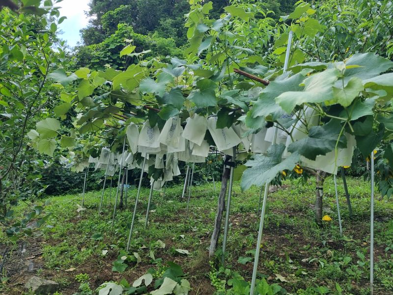 옥수수 방제:살충제,진디기 포도 봉지씌우기:살균제,진디기 혼합방제후 봉지씌움