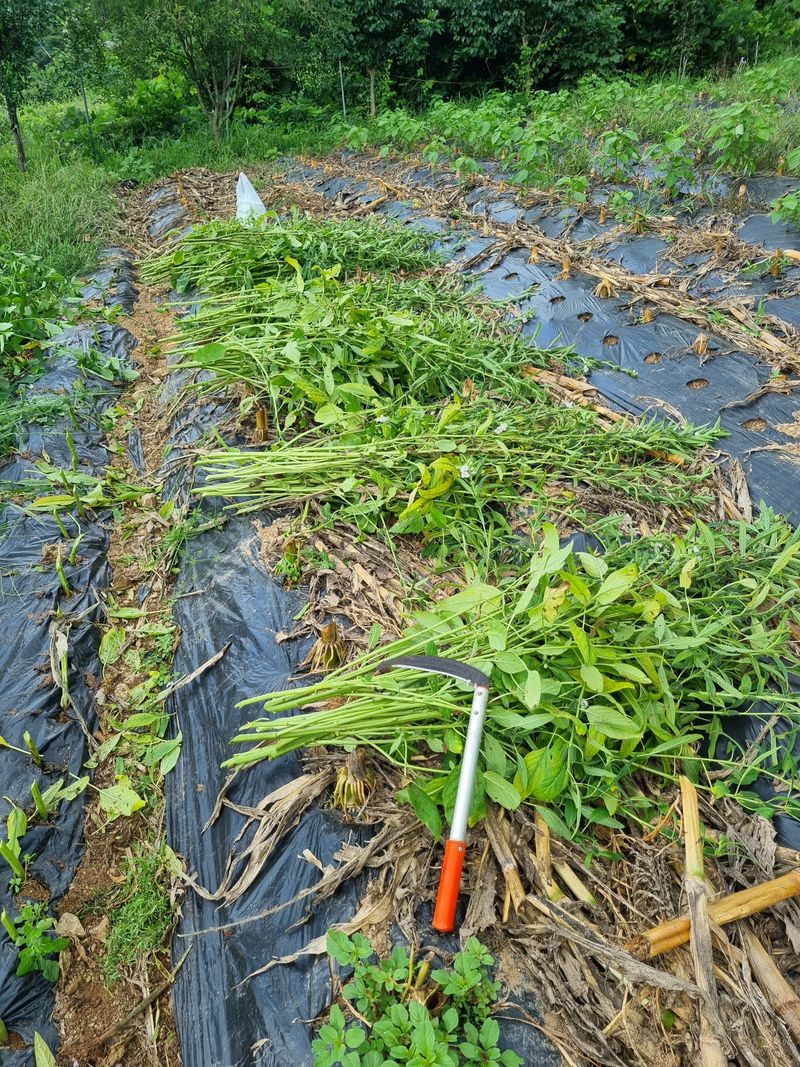 들깨 탈곡 :8.2kg 멀칭비닐 제거작업 '25년도 건고추 수확량:20근정도임 (수확초기 2번정도 충해로 소확못함 약10근정도 예상됨)