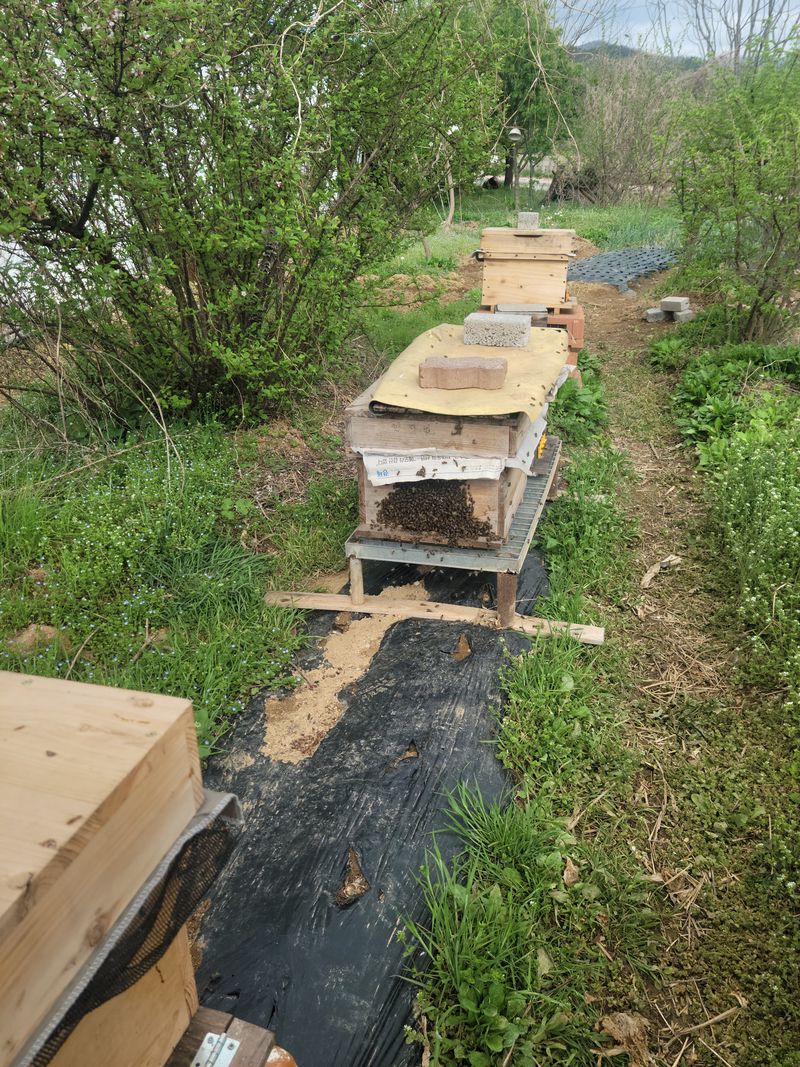 토종벌 깨우기작업을 하였다 개량통에 화분떡을올려주고 따듯하게 보온해줌