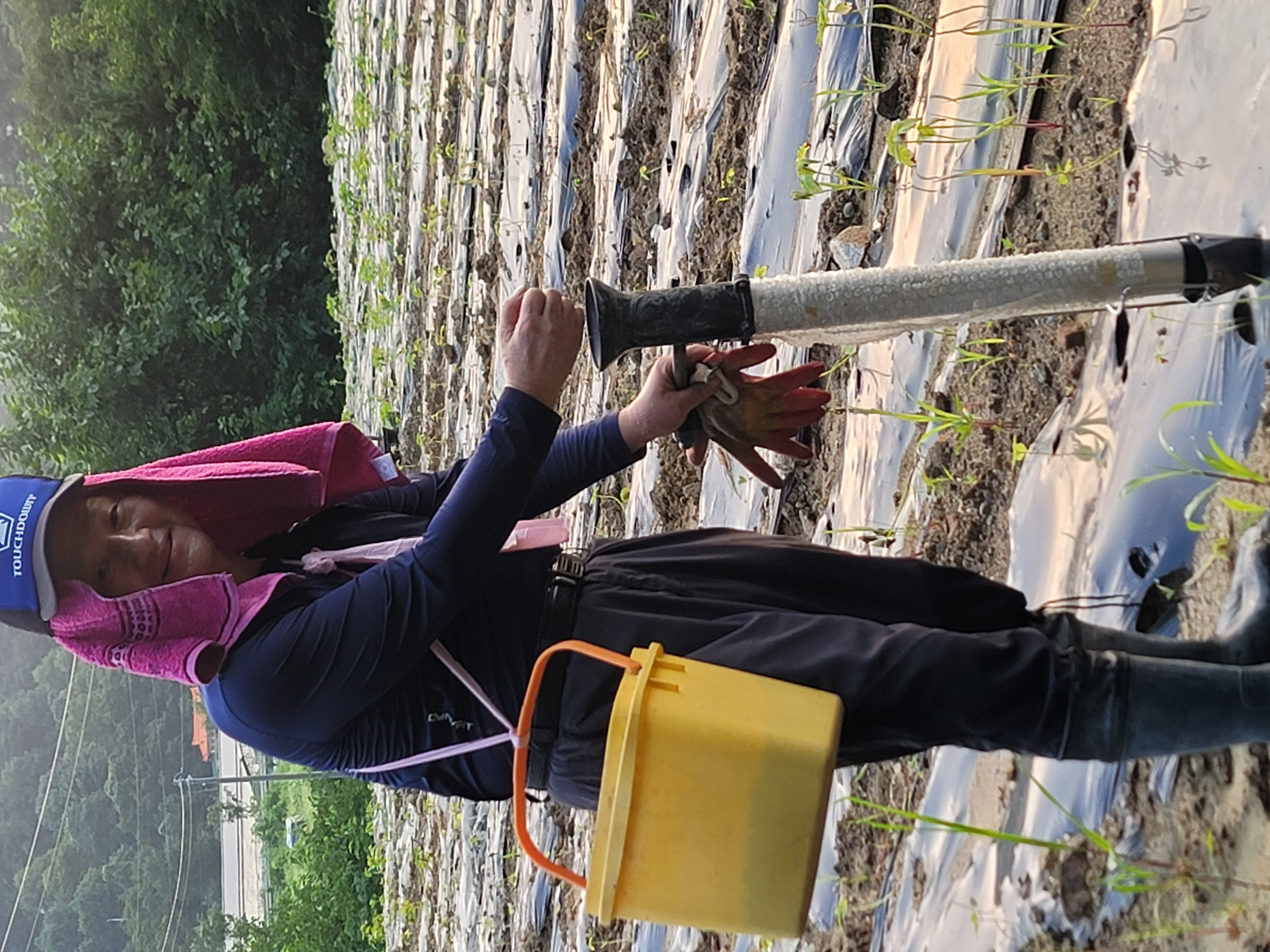 오늘은 들깨밭에. 비닐 작업을 하고 장마대비 물홈파기함