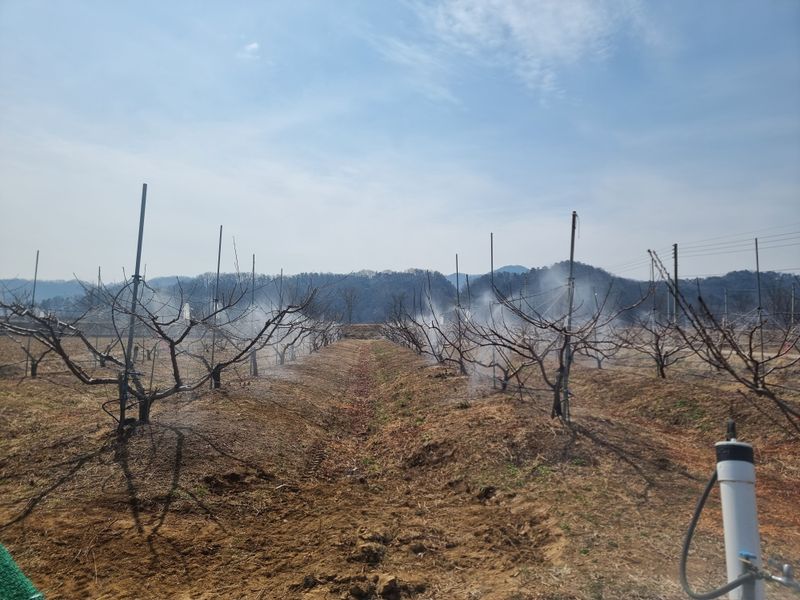 신선복숭아 나무주변 진딧물살충제 살포