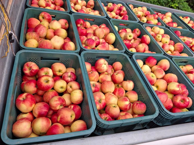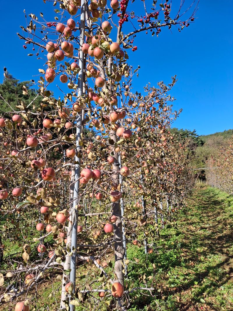 아침에 중광정리 황산가리 2포 살포.. 명지리 아래홍로 사과 수확했다. 순자씨 내외와 수찬 네도 와서 도왔다. 76상자 저장 입고 되었다.