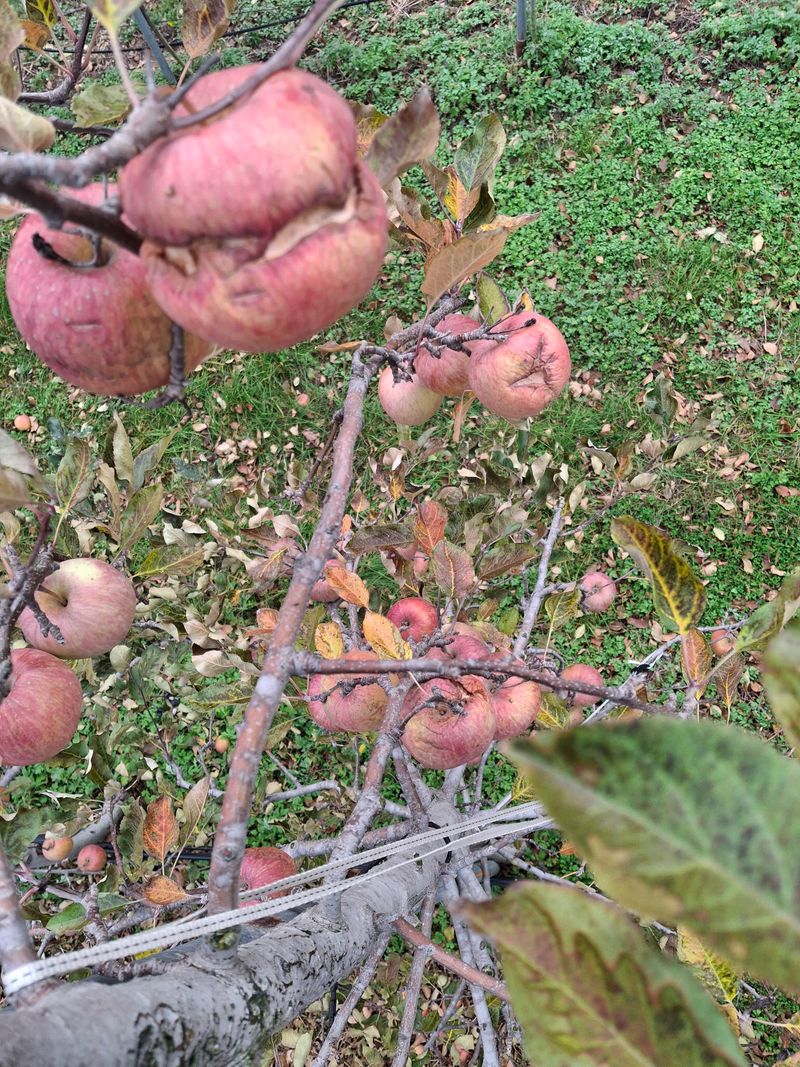 중광정리 사과수확. 위조 과 가 너무 많다. 수확기의 가을 장마로 수분 흡수가 많아 쭈굴 해진 사과가 30%정도 되는같다. 비가림 시설을 해야겠딛.