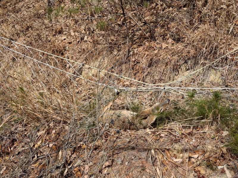 명지리 순찰중 고라니 한마리는 망에걸려 죽은지 몇일 도었고 또한마리는 간밤에 걸려서 아직 펄떡