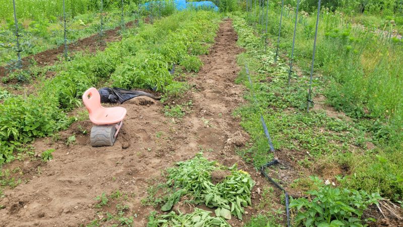 토마토 순치기, 예초기 제초작업, 호박, 참외 순치기, 퇴비주기