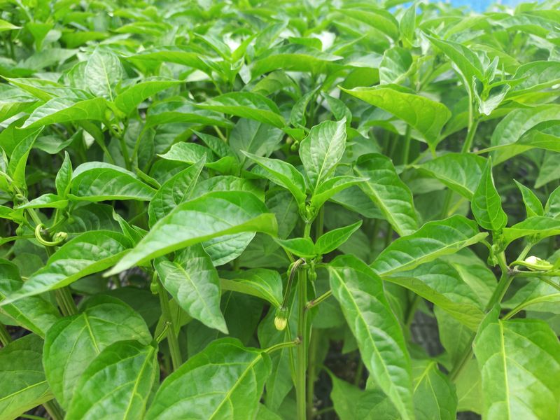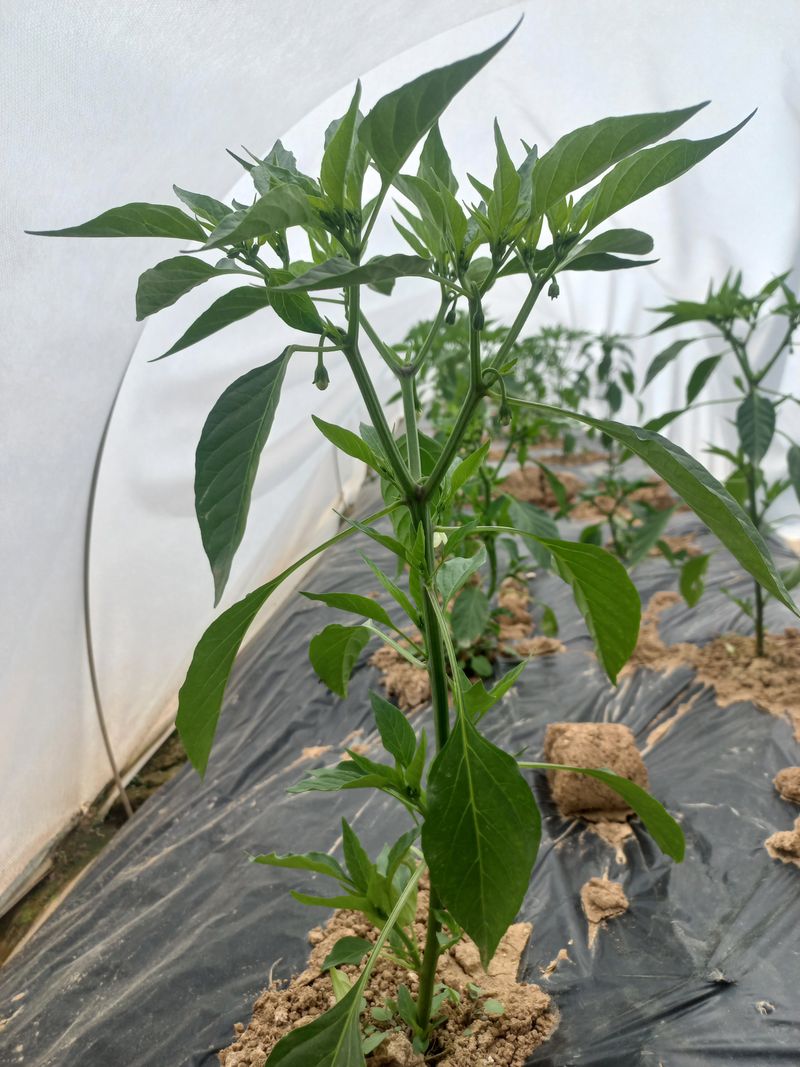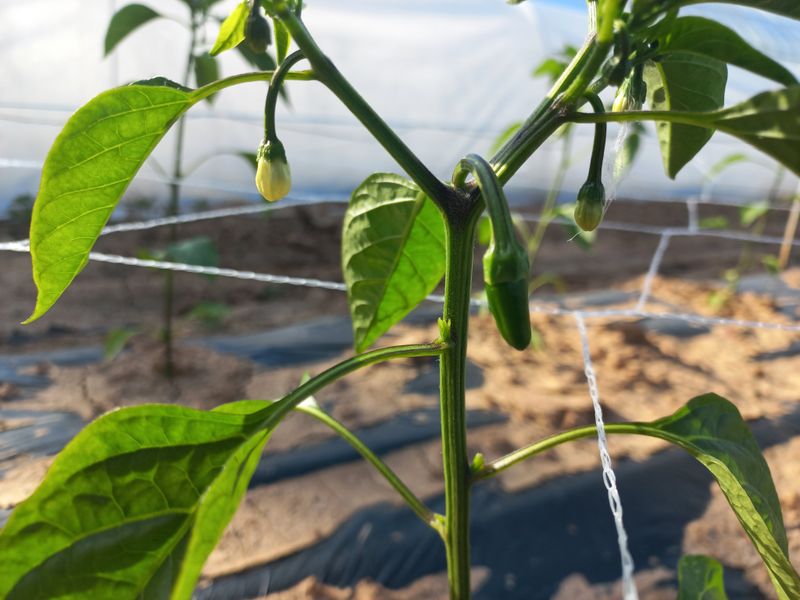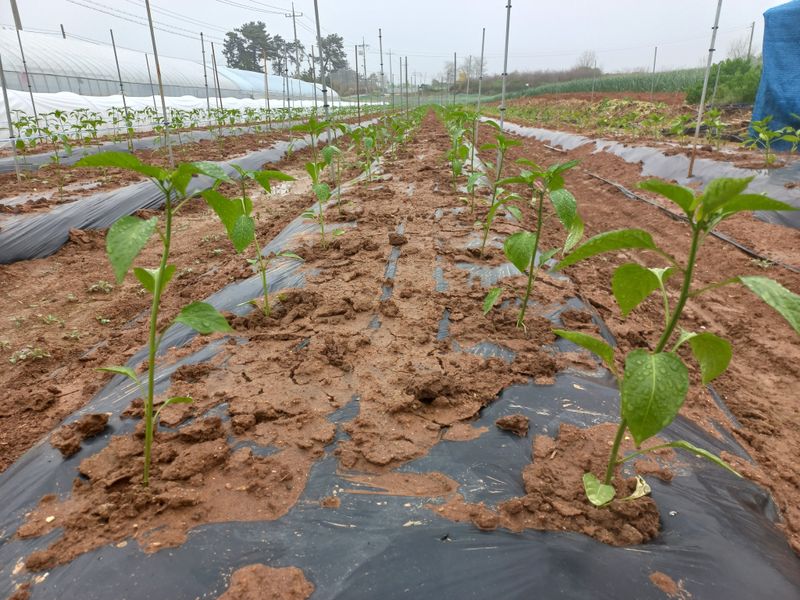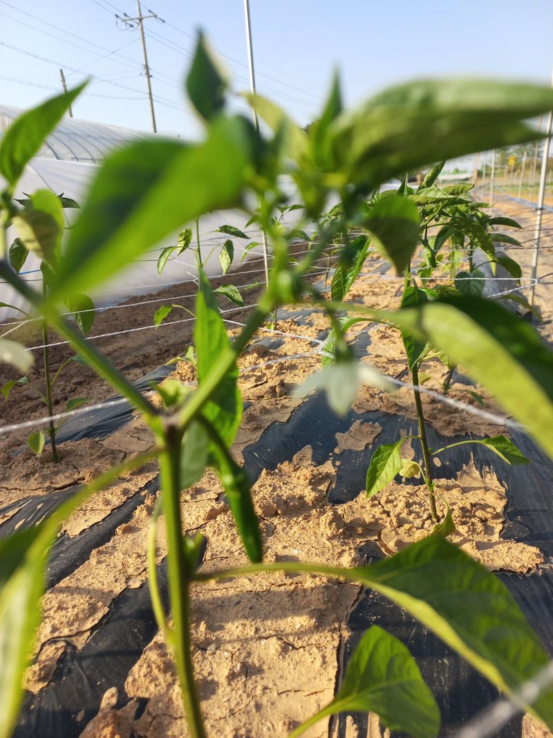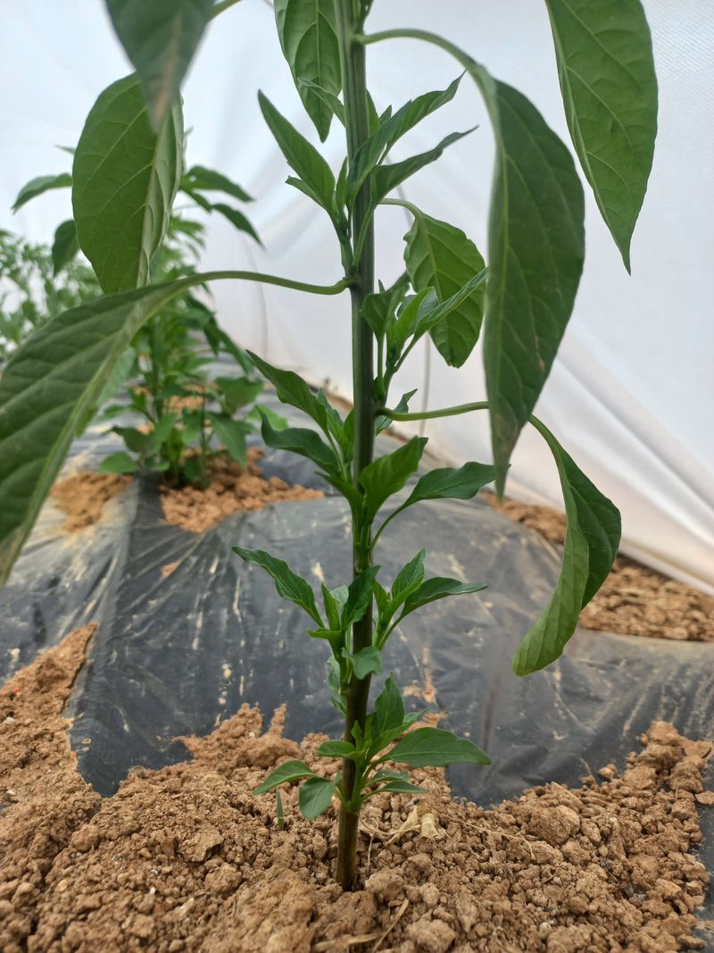 4월17일 정식한 노지고추는 방아다리고추가 제법 컸습니다. 반면 4월1일 터널재배용으로 심었던 고추는 곁순은 풍성하나 본줄기가 많이 연약합니다. 어제내린 60mm의 비에 부직포벗긴 고추나무들이 힘겨워하네요.