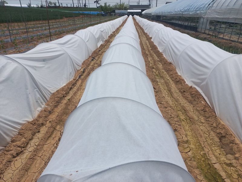 해마다 터널재배는 3월25일경 노지재배는5월8일경 심어왔습니다. 그런데 올해는 기상여건이 좋지않아 터널재배는 4월2일에 시작했고, 노지재배는 4월16~22일까지 기온이 매우높아서 예정일보다 20일 앞당겨 4월17일에 노지정식을 마쳤습니다. 이후 23일부터 4일간 최저...