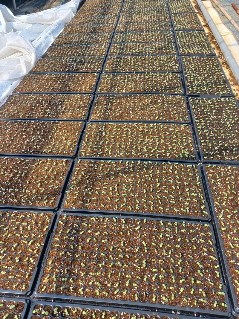 1차파종한지 7일째. 발아율90%는 넘는듯 합니다. 오전에 잘려진 싹이 대여섯개 보여서 모캡 뿌렸습니다. 2차파종은 어제 '하니올'품종으로 해놨습니다.