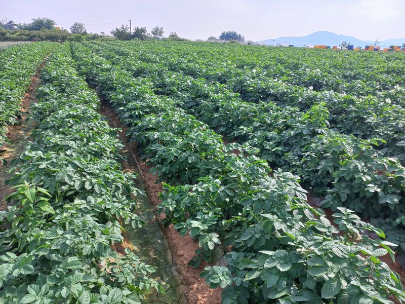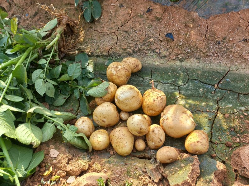 봄감자(통일) 수확일자를 가늠하기위해 세포기 뽑아봤습니다. 약간 미완숙이라 5~10 일정도후에 수확해야할듯 하네요.