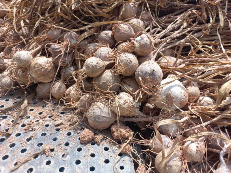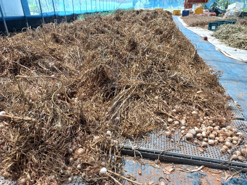단구마늘이 바짝 말랐네요. 줄기 잡으면 바스락 부숴집니다. 탈망기로 10분 돌리면 한번에 25kg가량 깨끗하게 때빼고 면도하고 나옵니다. 오늘부터 대략 100번은 넣고 돌리고 꺼내고 반복해야하넹요.