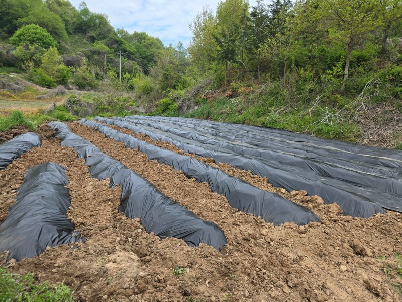 고추밭 비닐씌우기