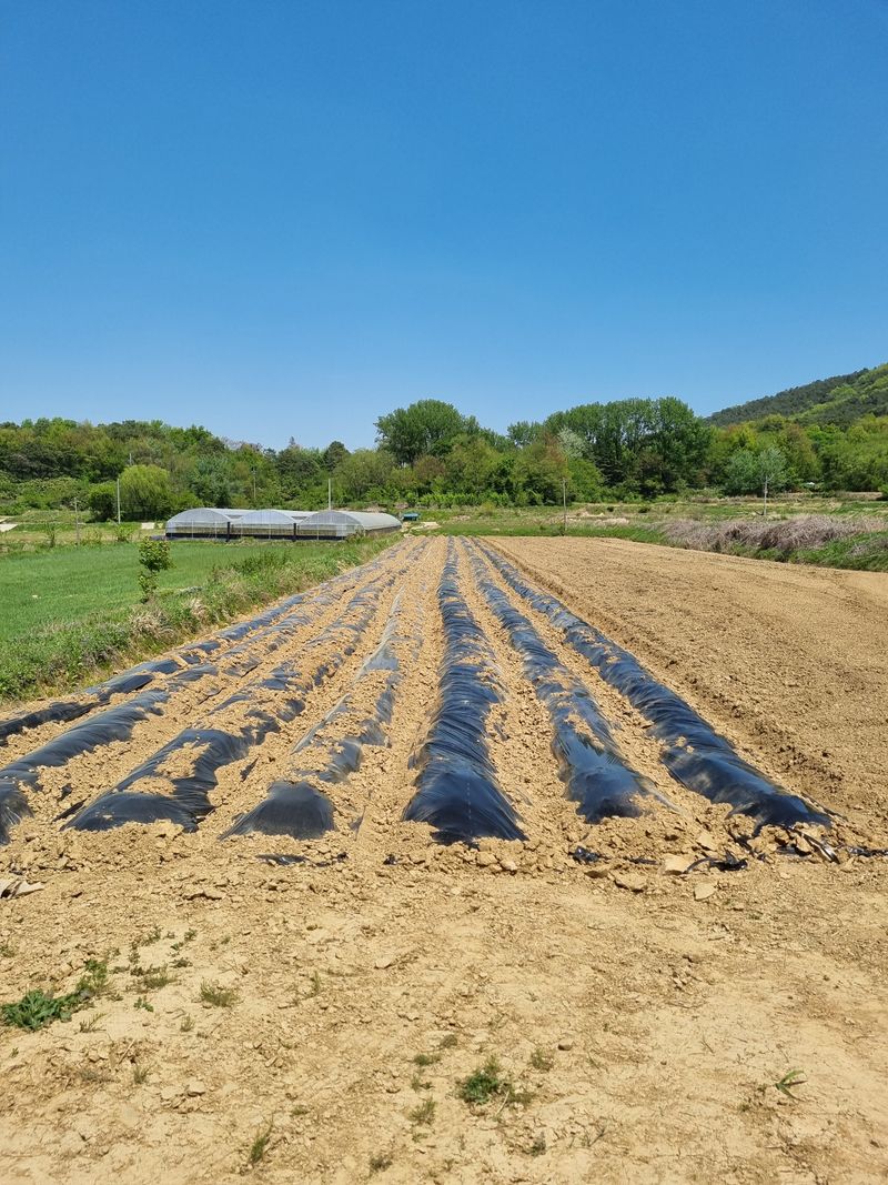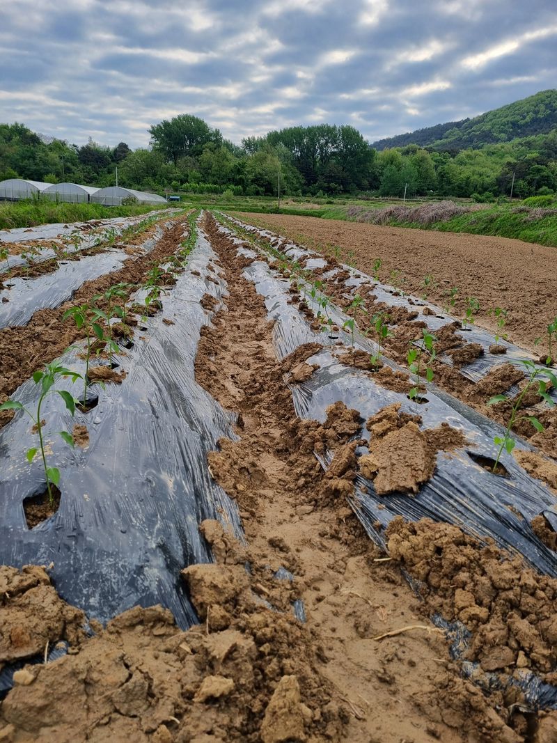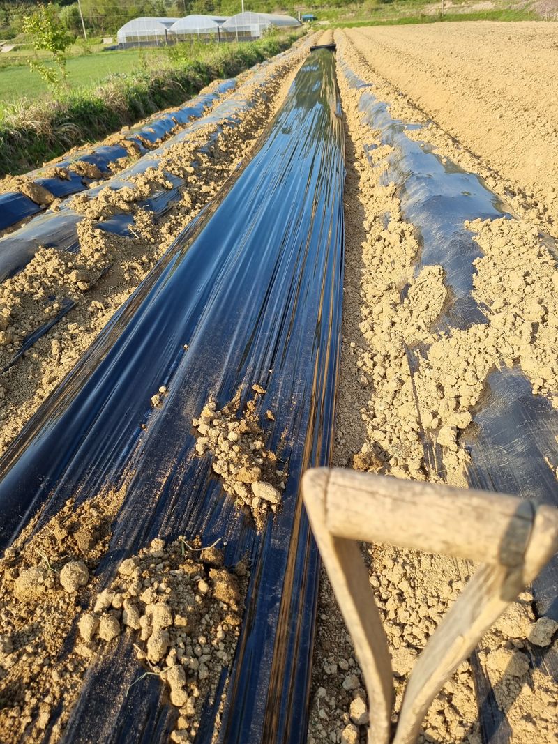 고추지주대세우러밭에갔어요 근데냉해가많이왔네요 고라니가 고추끝을자뢌네요 먹지도않으면서 비닐도 밢아서 구멍내놓고