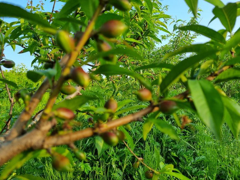 중생 복숭아 열매솎기 냉해를 많이 받았어요 달아야할자리에 놔둘수가없음 수확량이줄것으로보임니다.