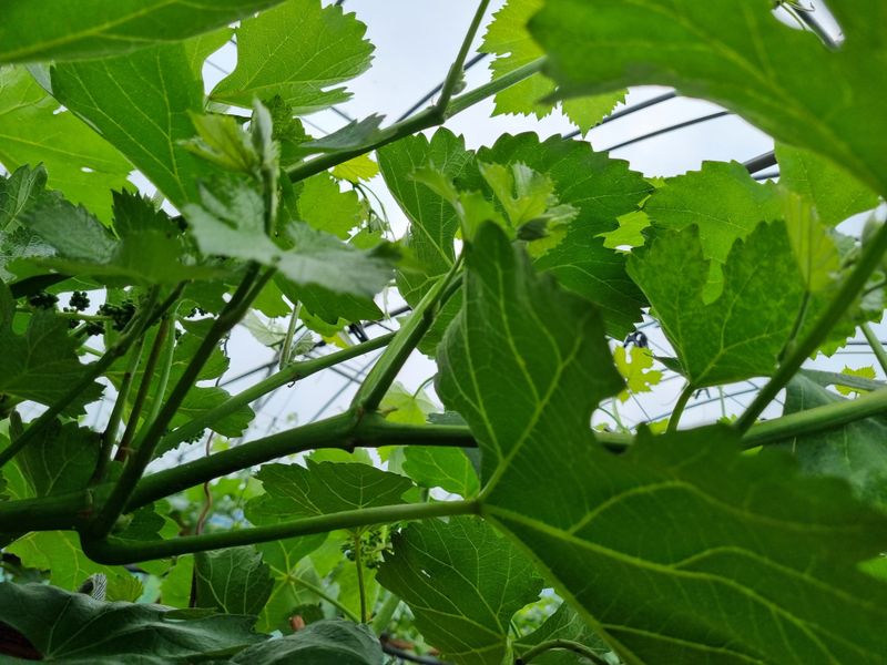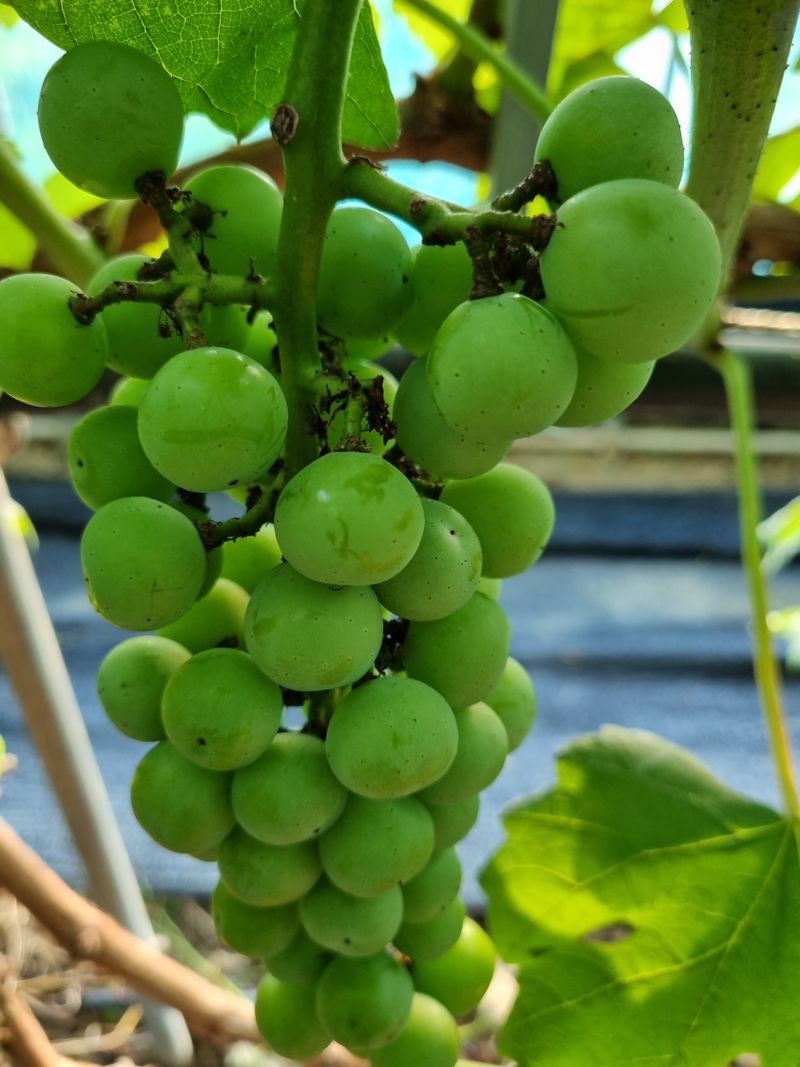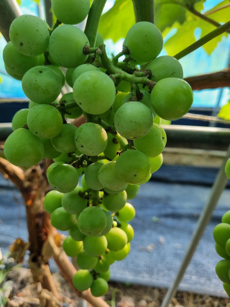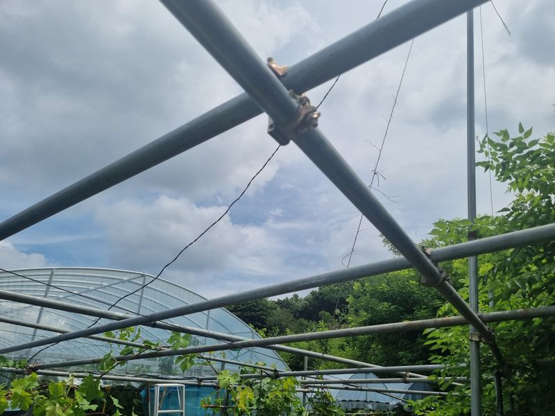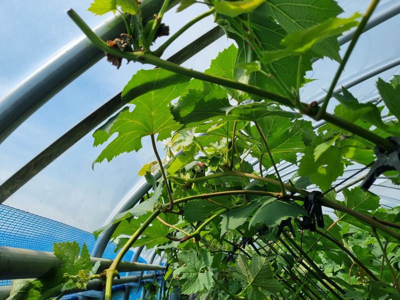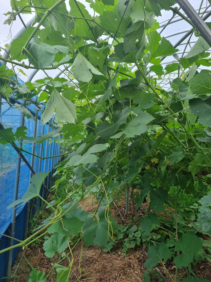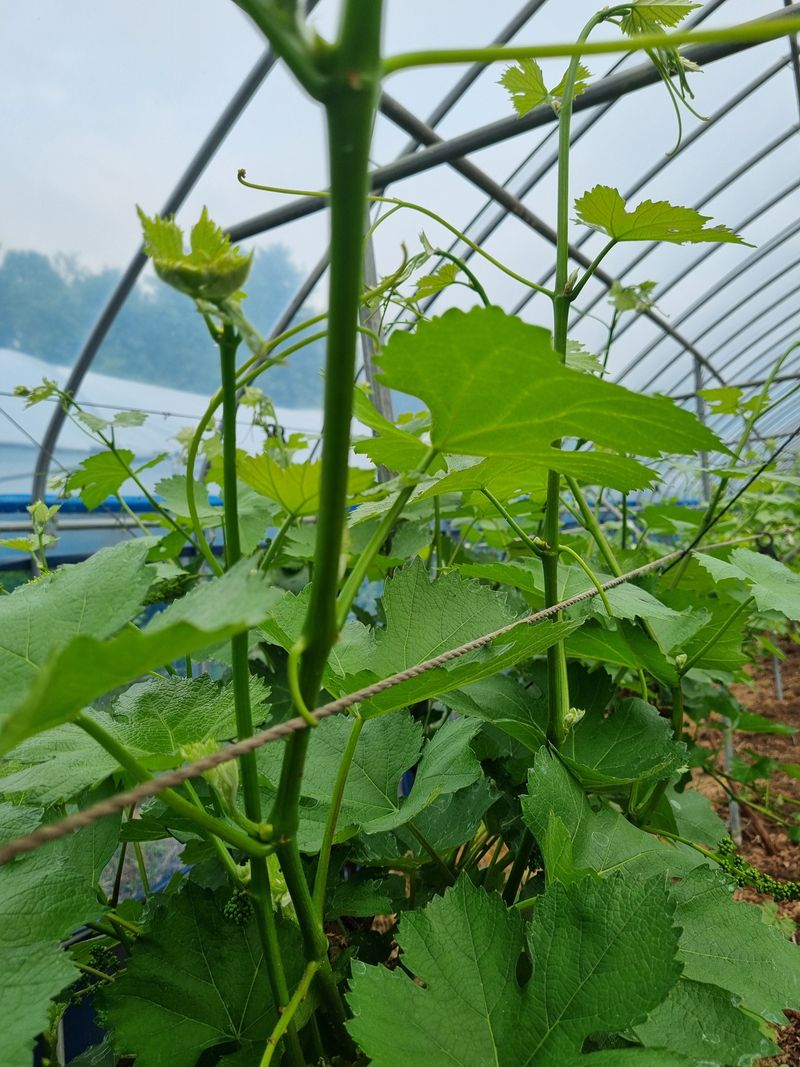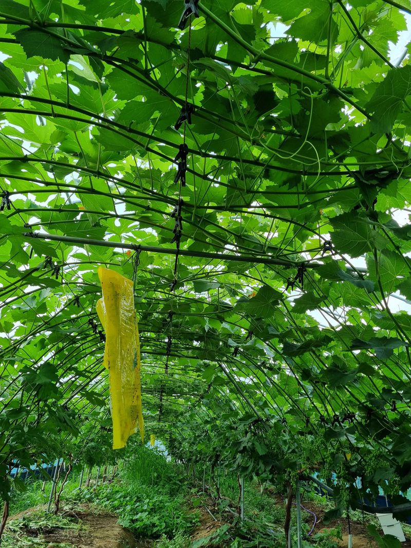 오늘은 포도충낭.샤인.bk시드리스 아들순제거.덩굴손제거.열매두송이 중 1송이제거작업완료 근데 순이 너무어려서 그런지수형 유인 놔두어야함 첫부분에서 툭 떨어짐발생