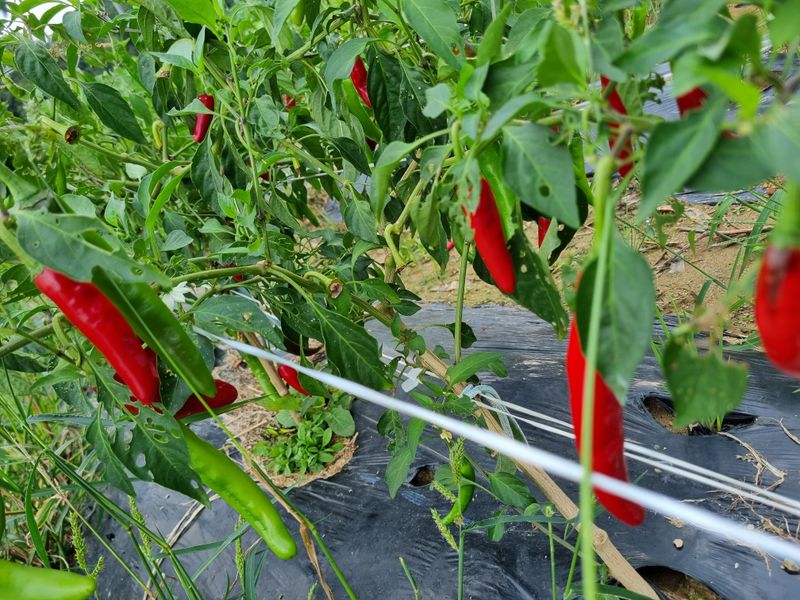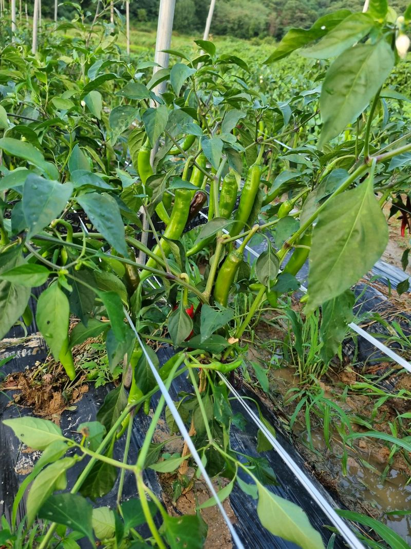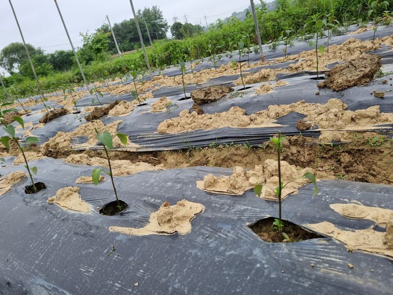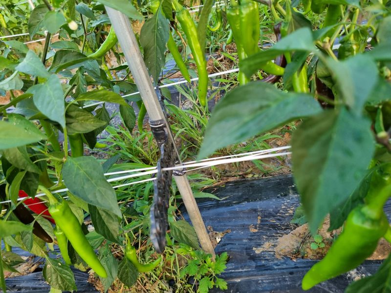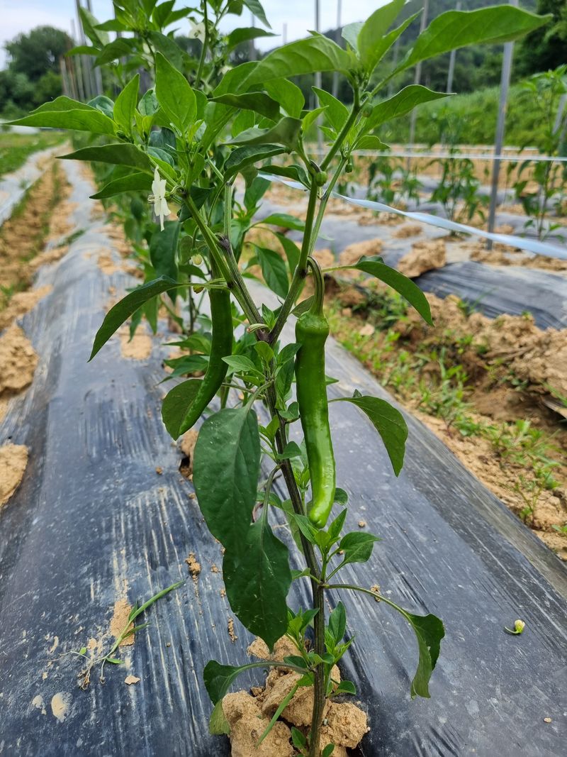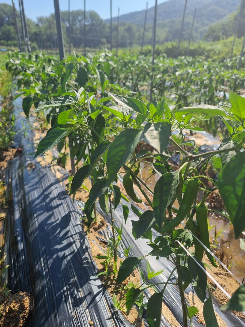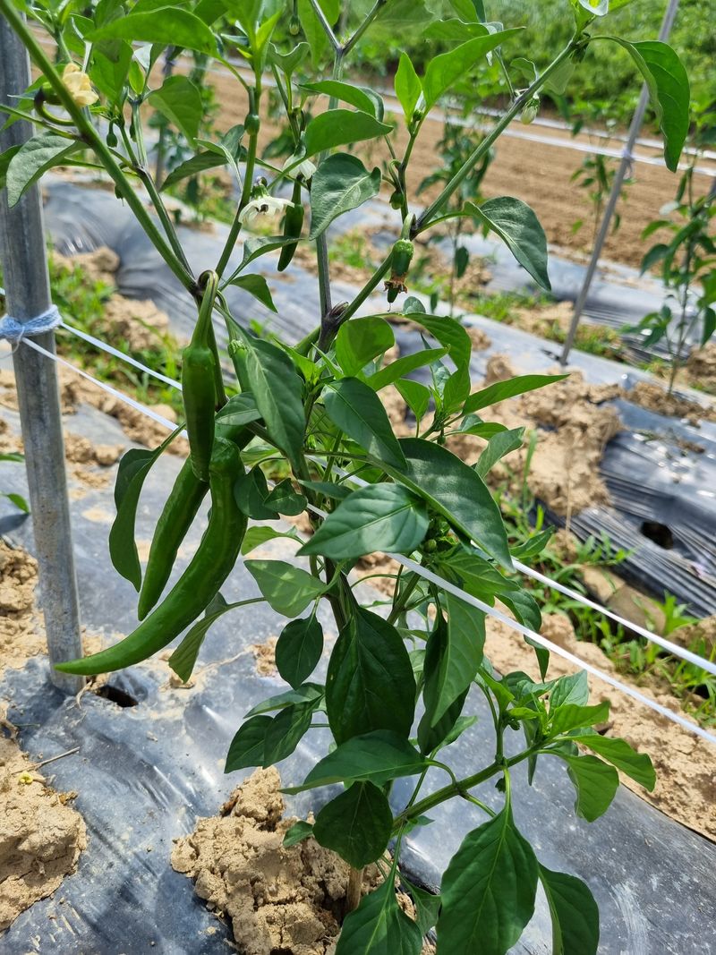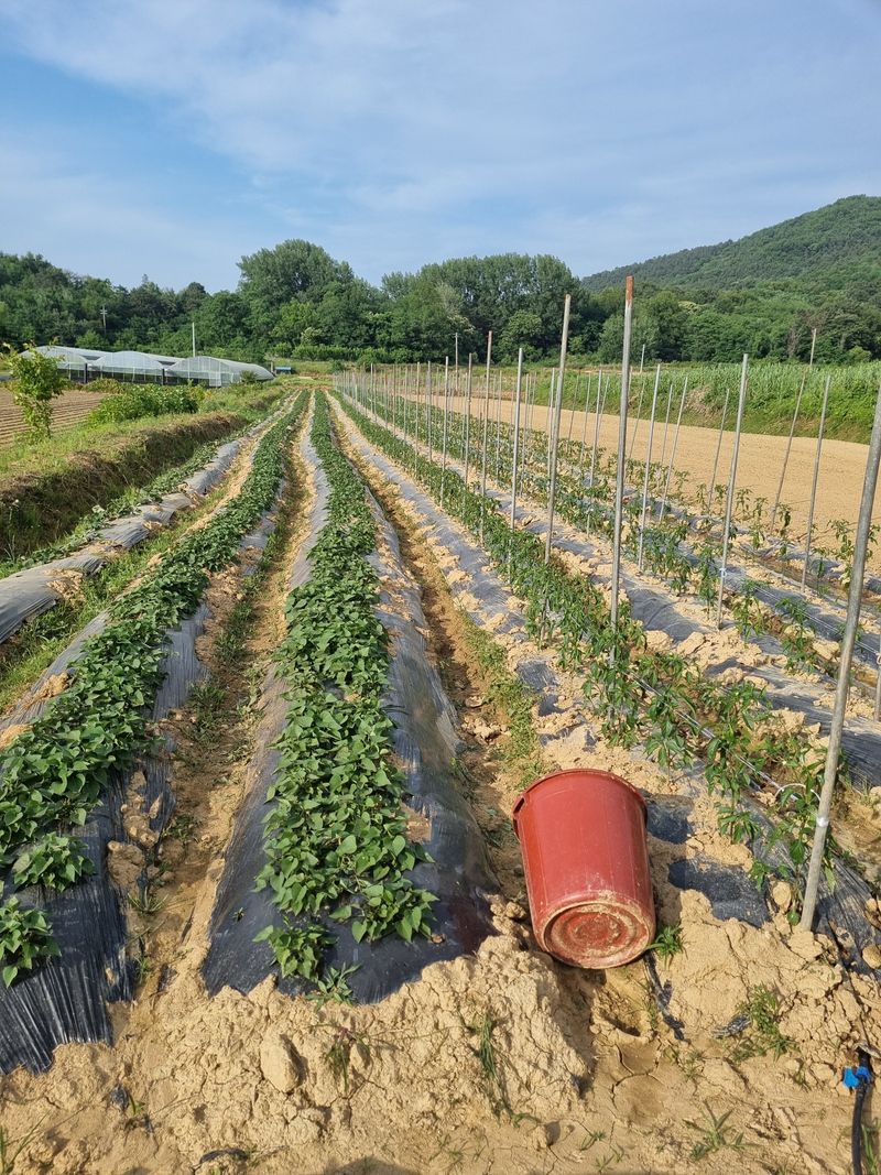 고추끈묶기 고추말뚝 추가설치 들깨 한판 모종 본밭에옮겨심기함 21일은고추끈 보강및 소독작업예정