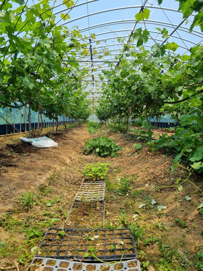 오늘은비가와서 하우스에있는 포도 하우스 넝굴순.곁가지순.ㅇㅇㅇ순 줄유인 정리등실시했어요
