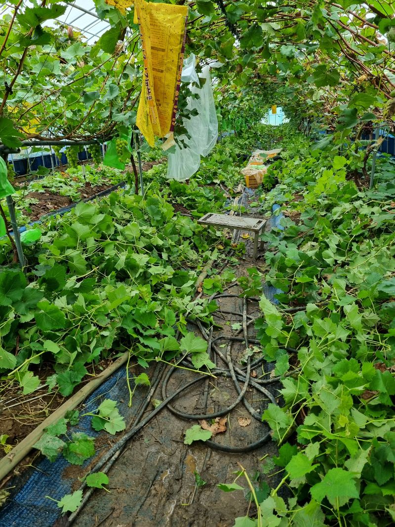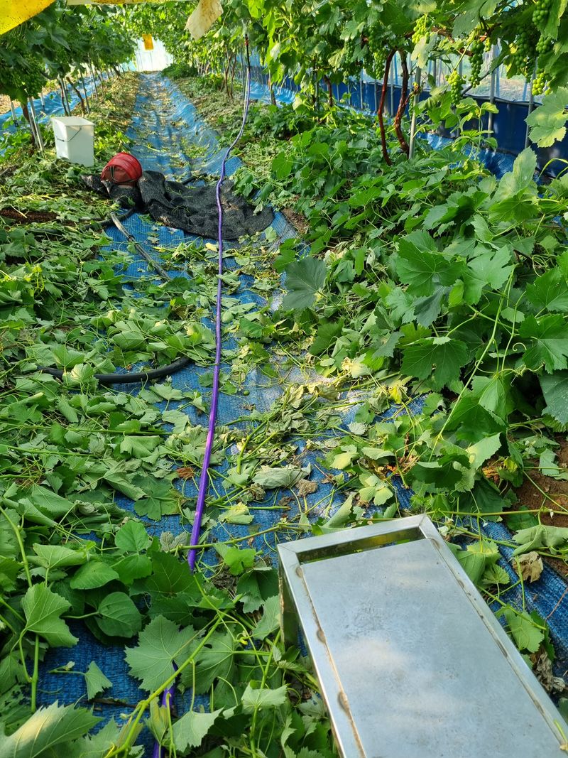 비 오는날 포도 화수정리 했어요 아주 좋은거 인건비 절감 됩니다. 처음은 몇개 화수가약해서 뭉떵떨어짐 발생 나만의 방법취득 넘 좋네요 강력추천 인건비좋음 8천원 가성비최고