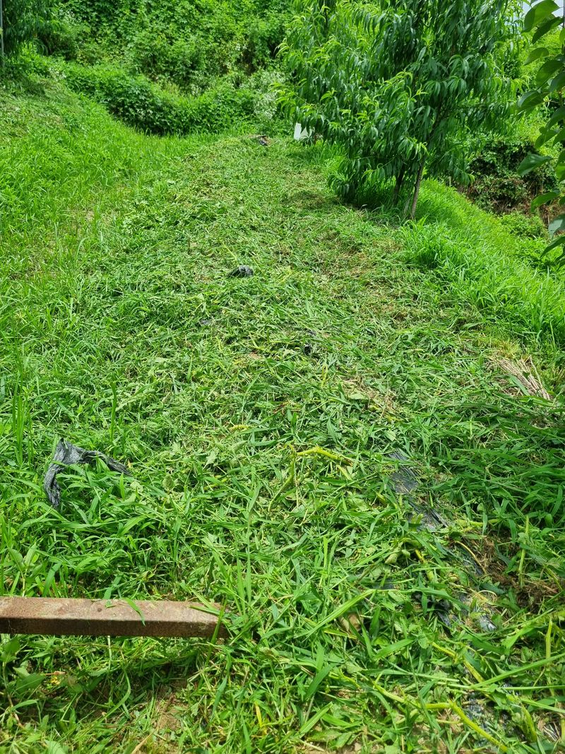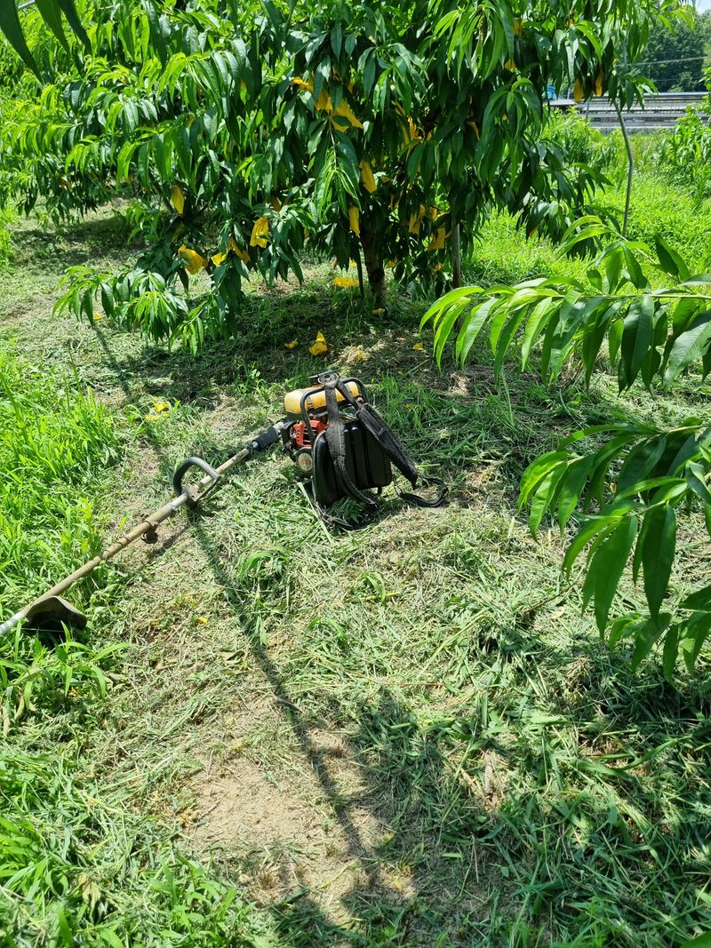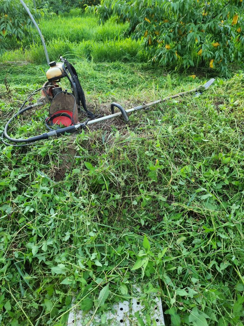 농약살포700L1350평 살균제+살충제+보강제 오후는 복숭아과수원 제초작업 시작 3일은 소요될듯해요 일반풀 긴풀 덩굴풀자르기 기준에따라 사용할 칼날 변경 탈부착 합니다.