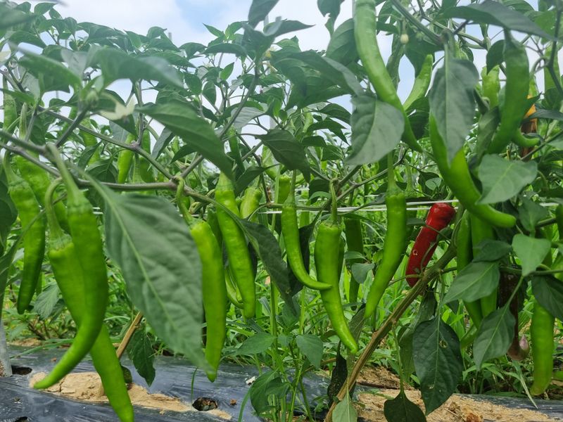 오늘은 고추곁순 제거 하셨네요 1차분지에 열린 고추도제거하고 제거한순은 이웃집 지인나누어줌 벌써 진딧물(뜨물)이오고 노린제도 붙어있고 담배나방도 발생됙ㆍ 오늘은 손으로 살생시킴 모터가누진떠서 모타병원같더니 물들어 같다고 하네요 내일은 아침일찍가서 고추밭 고구맛밭...