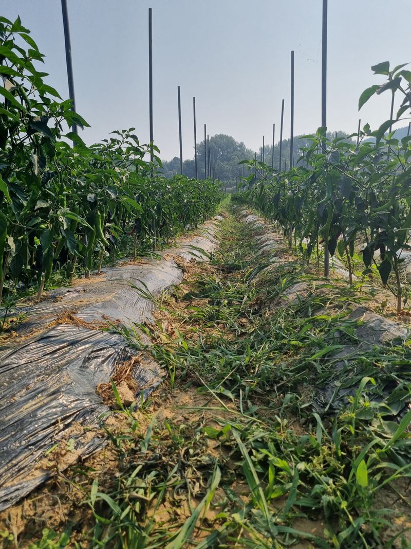 고추 약하고 제초작업진행 고추 물주기 날씨가 너무 덥습니다.37도시까지가르킴