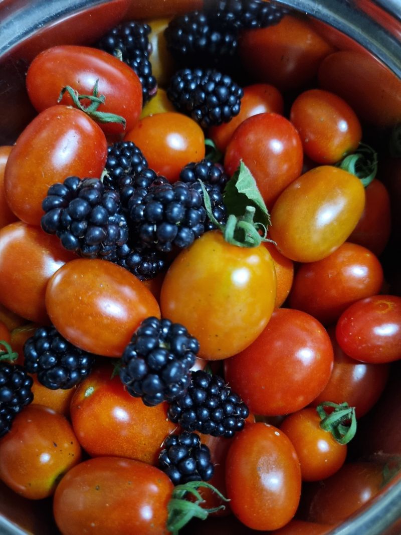 고추넘어진것 세워주기 줄띠워주기 취미로:개구리참외.자두.복분자.토마토 수확