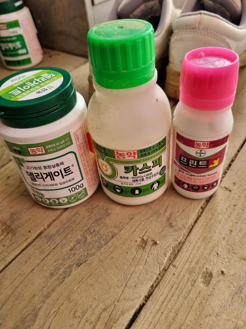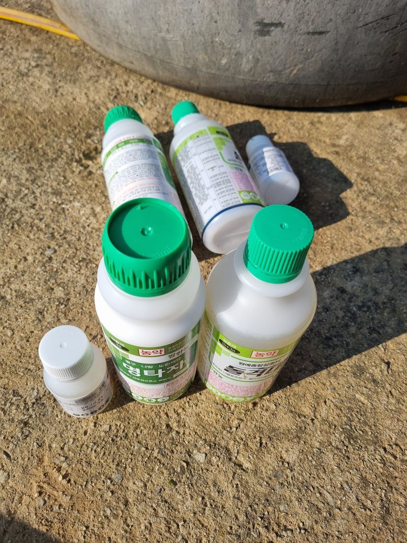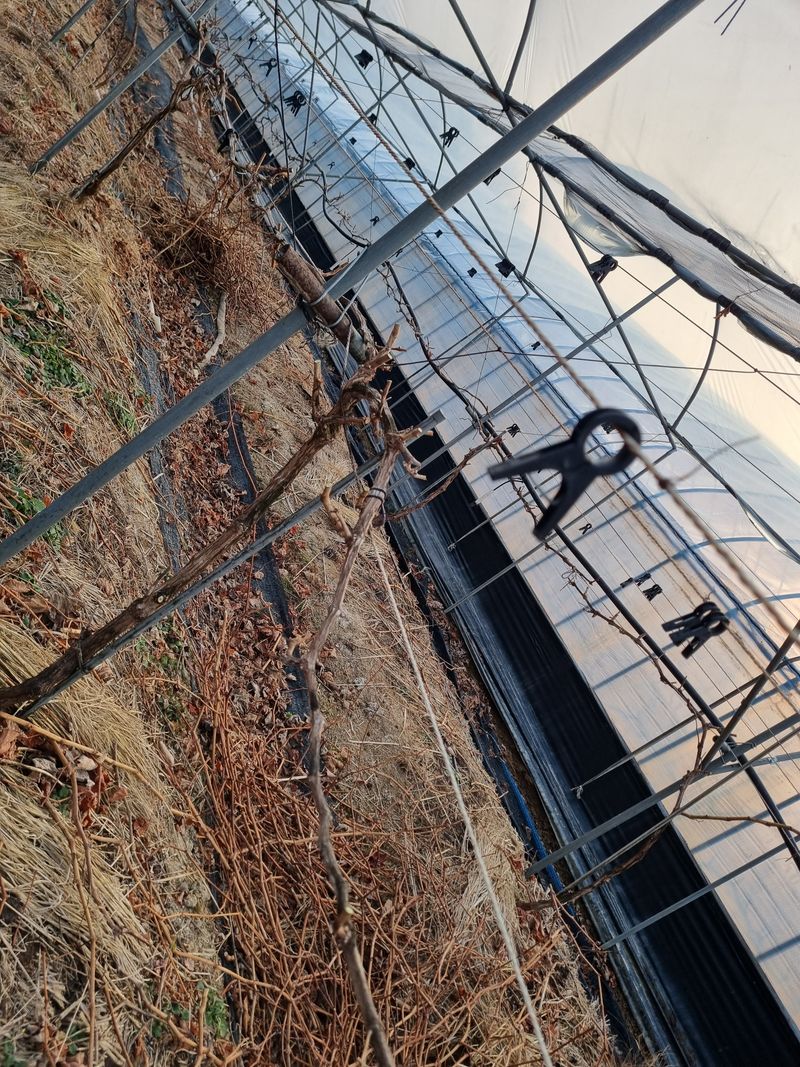 오늘은 포도 비가림 노지 유인선 설치 순정리 덩굴손 정리하다 말고 농약 진행함 올해 처음실시 응애약과턴저병약