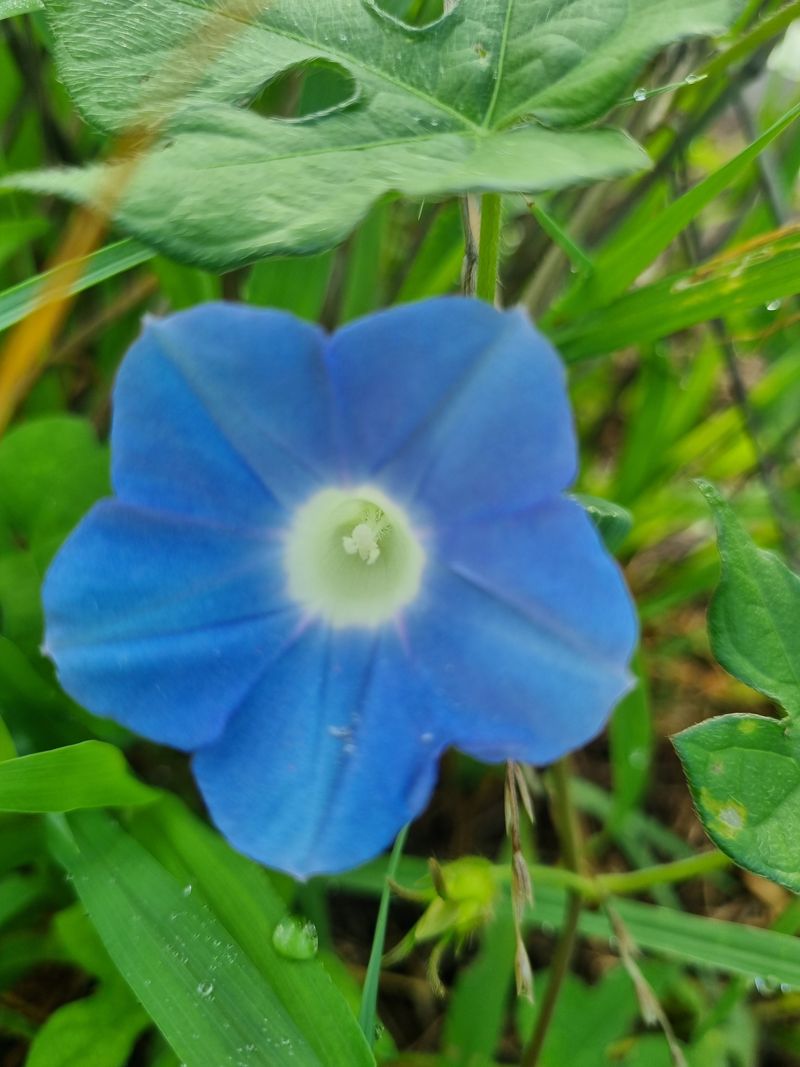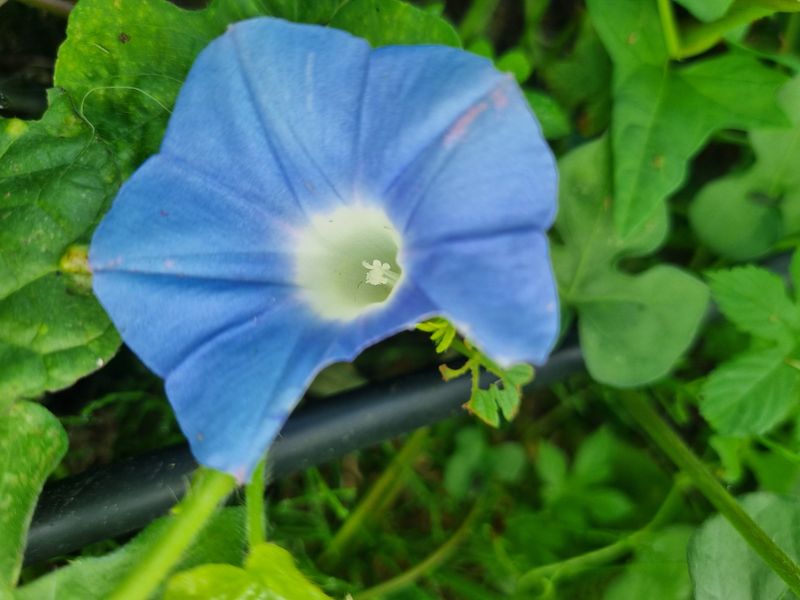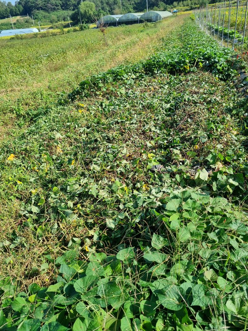 콩밭 잡초제거중 유독약하고 예초기로 상단 자르고 했는데도 또 살아나는 나팔꽃 날씨가 너무덥다. 이마를 익히려나 보다.
