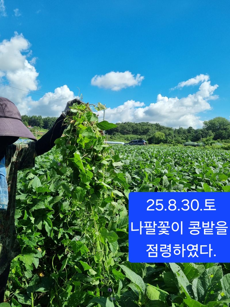 #출석부2025.08.03 일요일 일찍일어나05:40에 황화정리 밭에 왔어요 콩밭외부에 제초제 한번뿌리고 콩밭은 예초기 날로 날리면서 작업해봤는데 시운것은 아니네요 초보라 쉽지가 않은건지 복숭아 따기전에 콩밭 풀 모두 제거작전 해야겠어요 10시넘어서는 숨이턱 및까지 ...