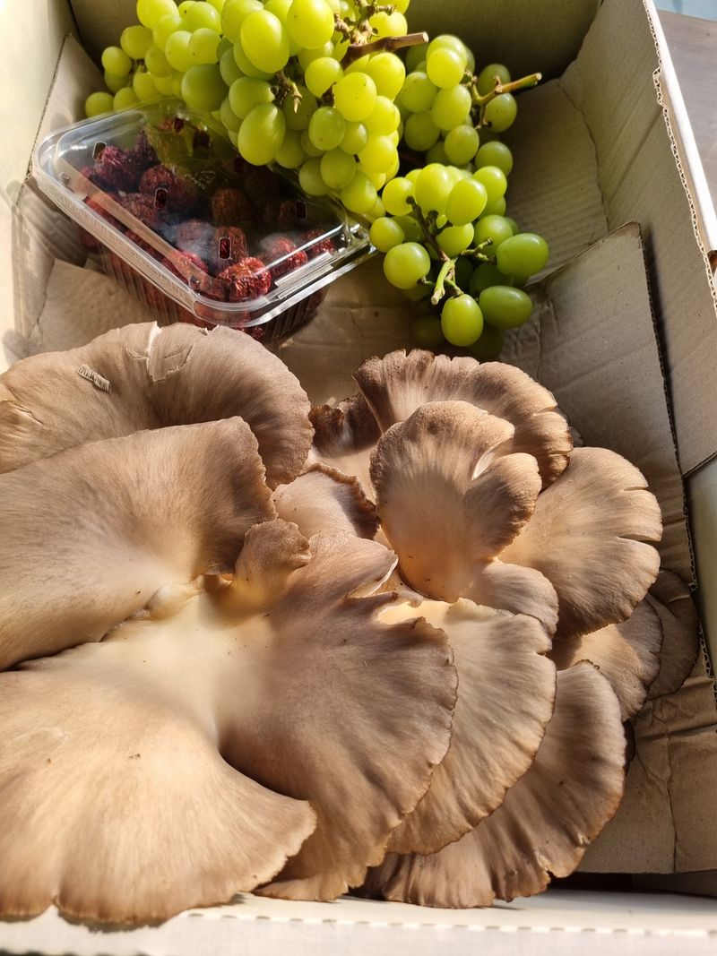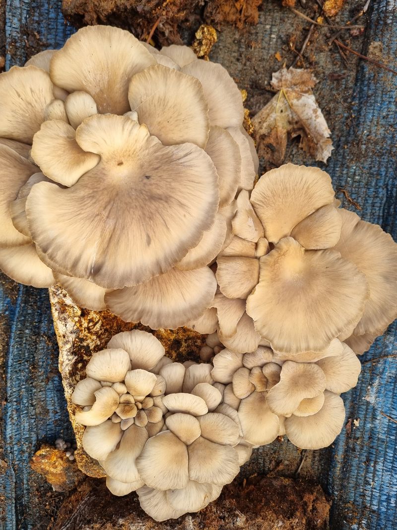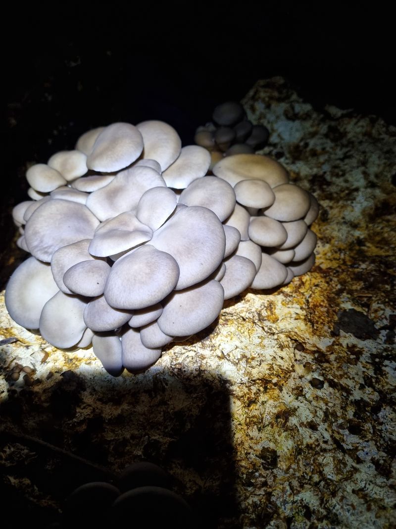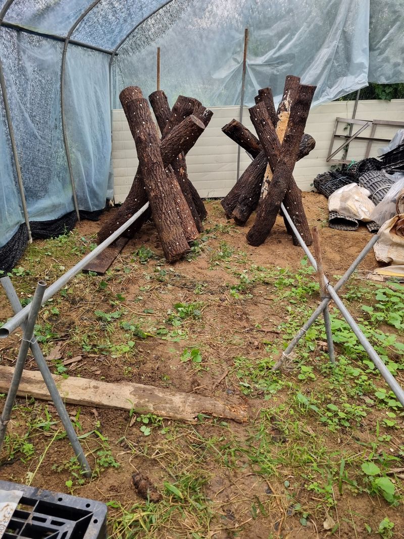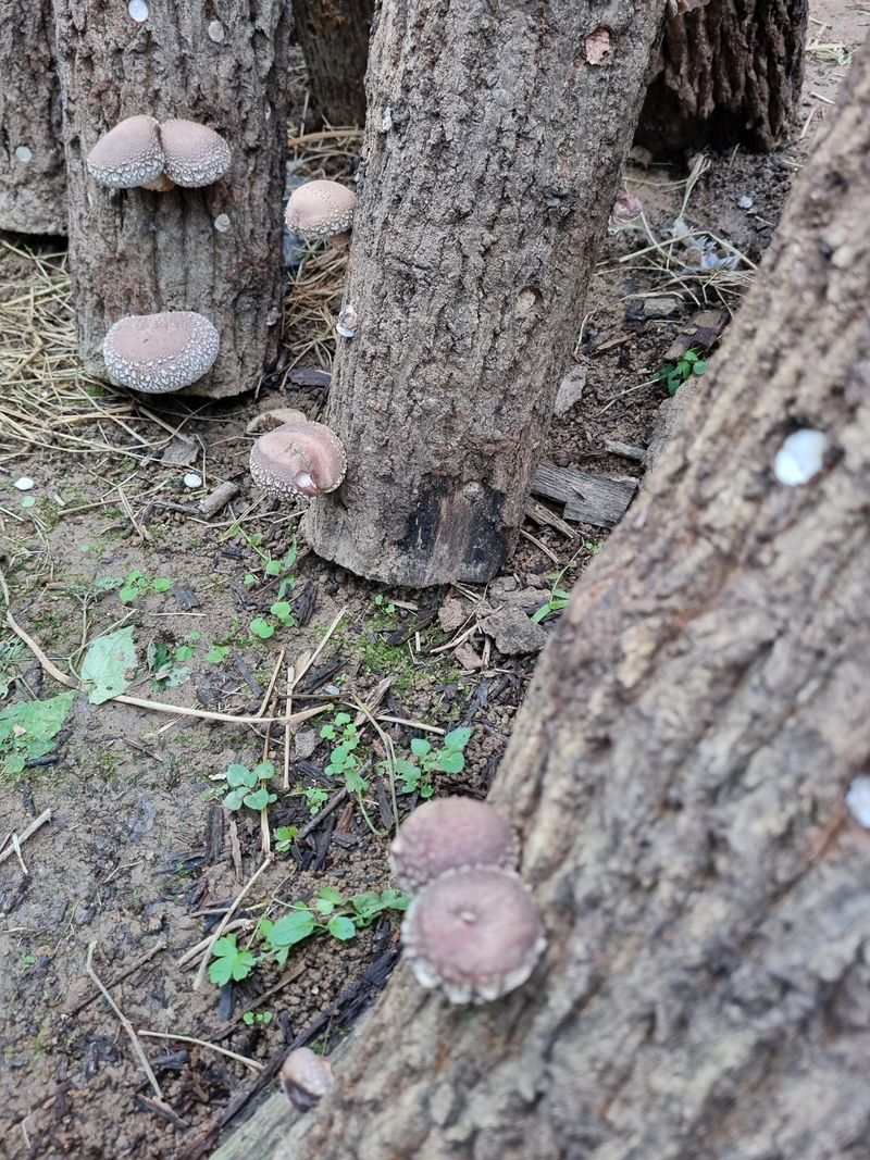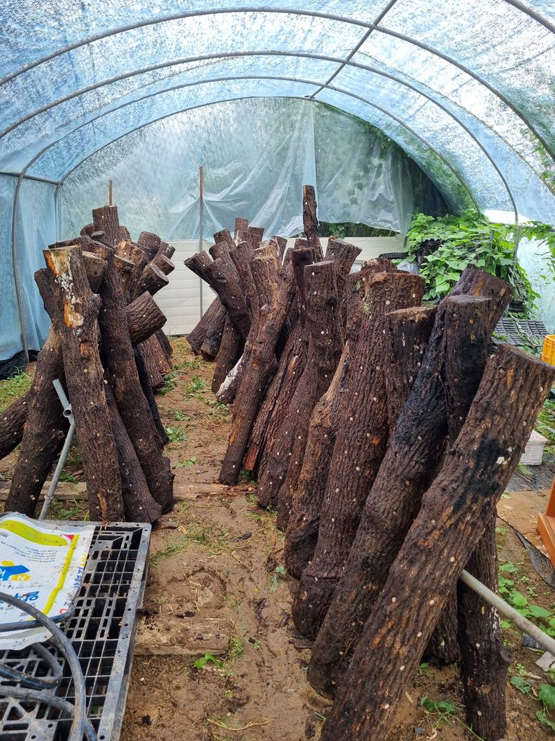 표고버섯.느타리버섯 수확하기 수확이라고 하기엔 그렇고 체험수준 입니다. 표고 나무 70주 2년차 느타리 칡즙찌거기 10상자 이웋과 함께 먹을 만큼나왔네요