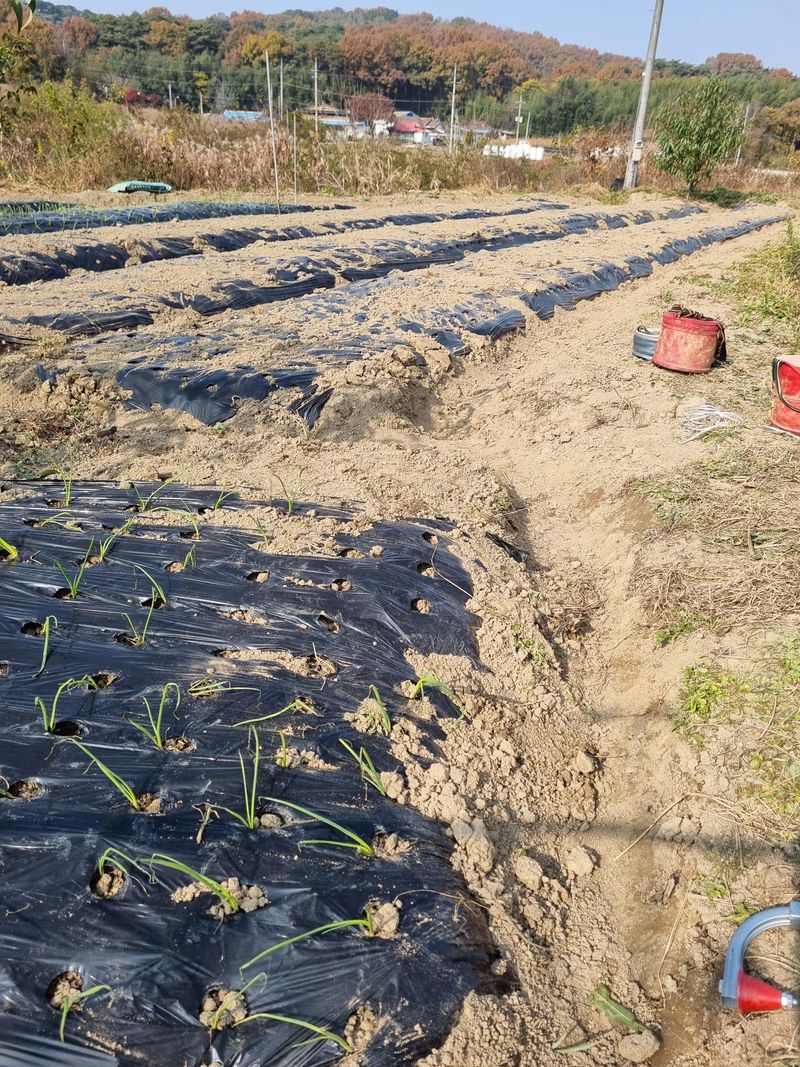 마늘밭 퇴비넣고 토양 살충제 살포 로터리 하고 골 정리 완료 마늘 쪽나누기 작업
