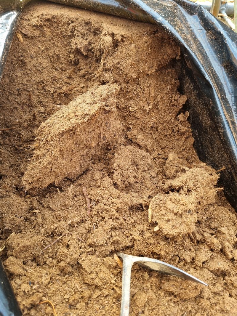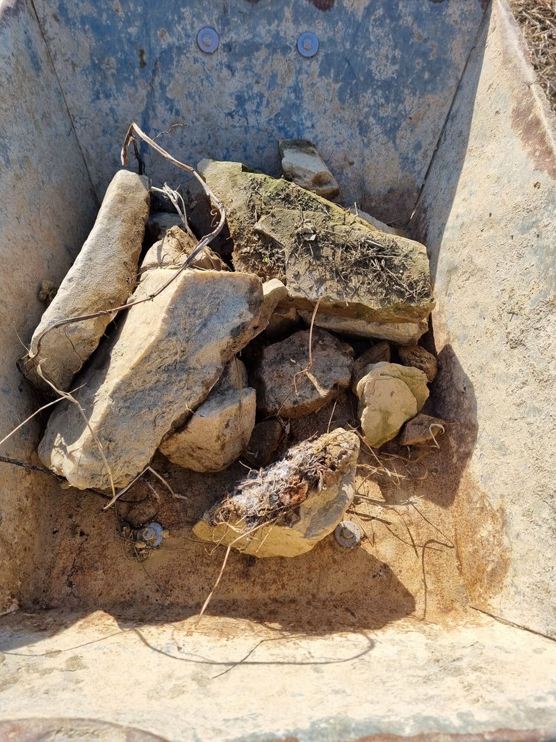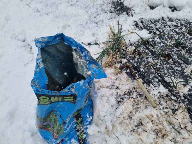 퇴비포대 옮기기 땅이 얼었다 녹았다하여 조금힘듬니다. 질떡거려서 외발수레가 잘 않굴러감 아래쪽만 옮겨놨어요
