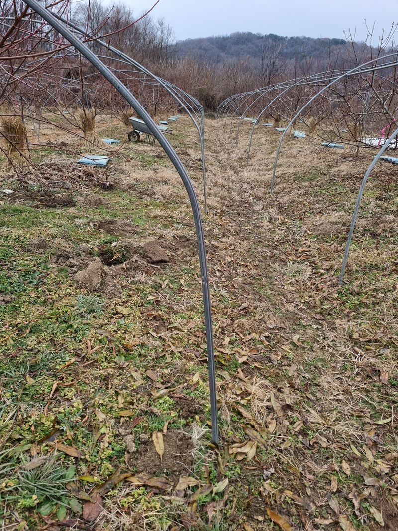 퇴비 나르기 복숭아 과원 3일째 마무리완료 비가 오네요 겨울에 영상날씨 복숭아병이 얼마나 발병할지 걱정