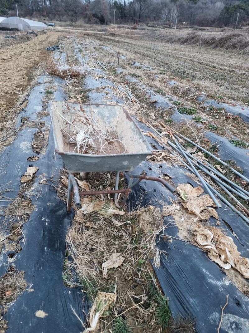 고추대뽑기/고추말뚝 뽑아서 정리 비닐은 얼어서뽑히지않음 미리서두를것을 아쉽네요
