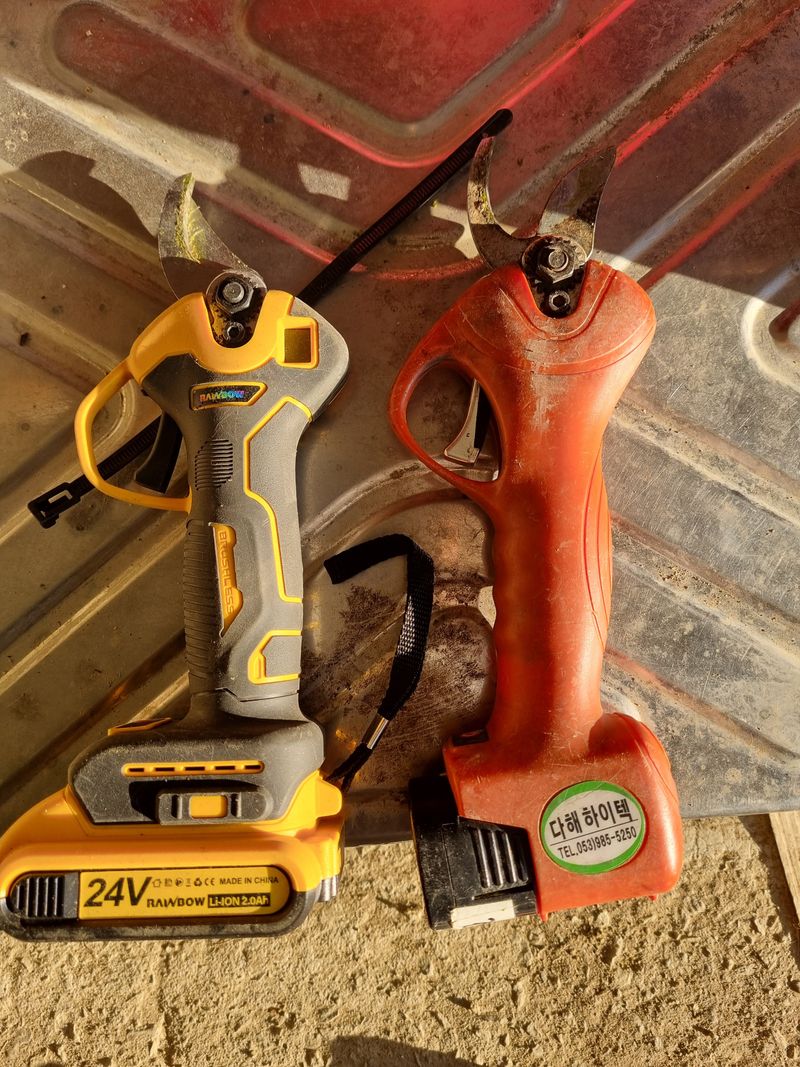 오늘은 복숭아가지치기 작업을시작했어요 2월에 다른일들과 겹칠것 같아서요 전지가워6년전에 구매한 것과 몇일전에 구입한중국산가위 12만원인데 성능생각외로 좋네요 옛날에 35만원 준것 같은데 야간에는 대추 교육을 받았어요
