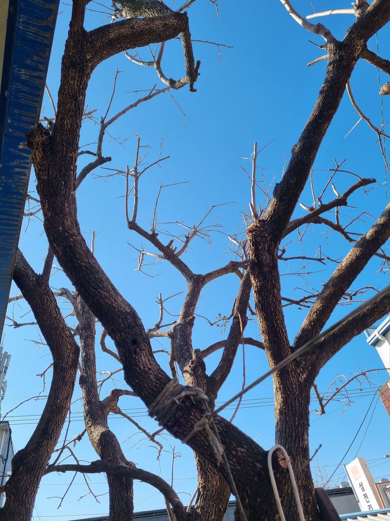 복숭아 나무 전지작업 진행 웃자람 가지 제거후 2차 잔가지 진행중 입니다. 바람이 많이불어서 춥네요 머리가 시렵 습니다. 한낮온도 13°c인데 바람이 불어서 영하날씨로 느끼는오늘 입니다. 감나무도 한그루하고