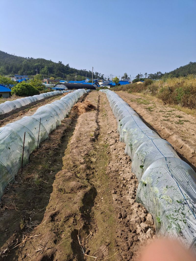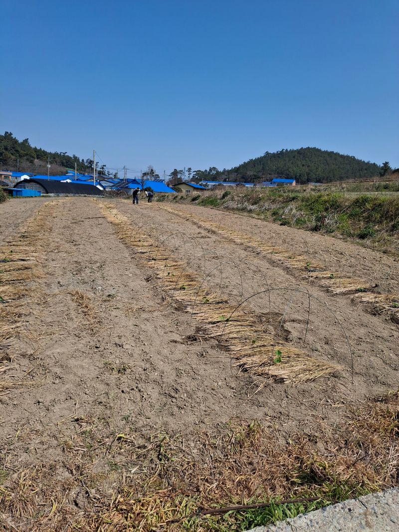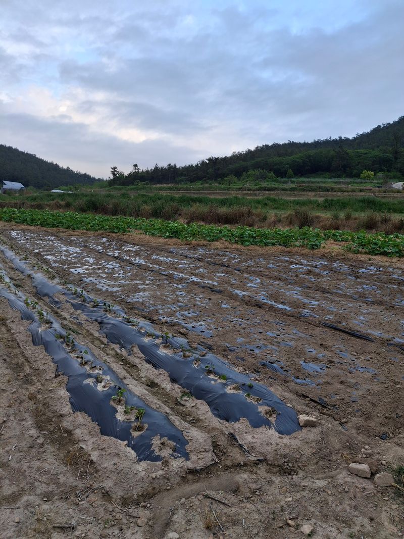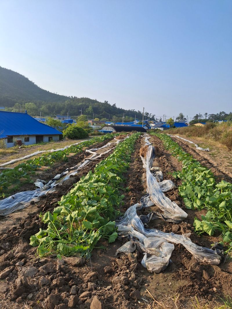 단호박모종300개작업 터널만듬 물주기 볏짚깔아주기