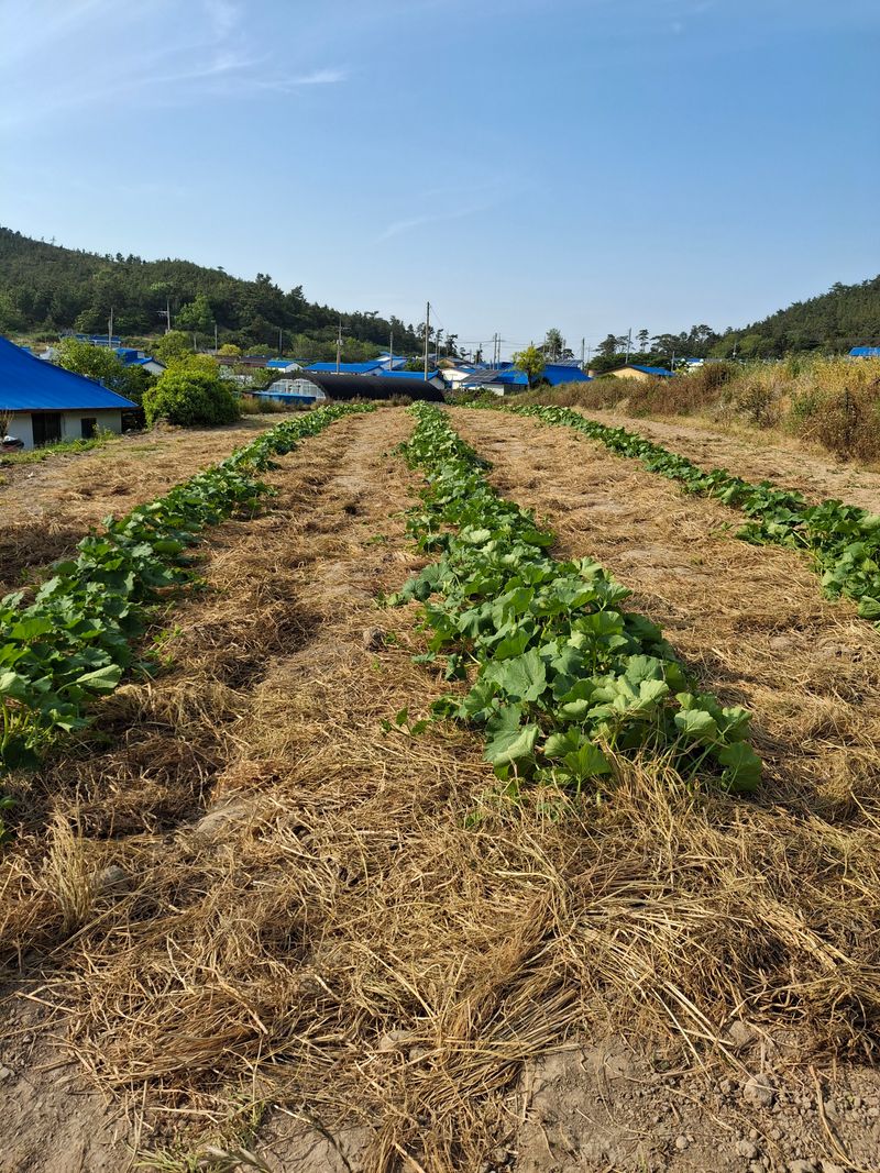 단호박밭 비닐멀칭 제거및 짚 깔기작업 이틀동안 혼자서 나락뭉치 두덩어리 피기^^ 고된작업 끝 보람차네요