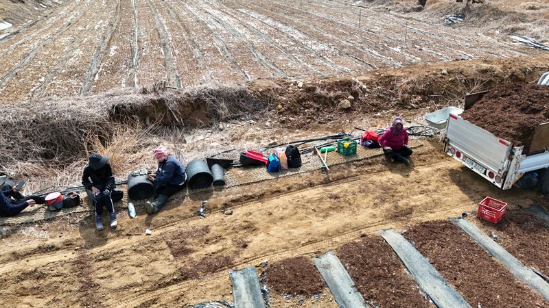 (3.24일)올해 곤드레 심기시작. 어제 거름펴고 로터리작업하고 오늘 (3.25일) 씨비닐 펼 예정인데 요즘 강풍이 많이불어서 걱정이다. 경상도쪽은 산불때문에 난리다.빨리 진화돼야하는데 몇일째 타고있으니 걱정이다.