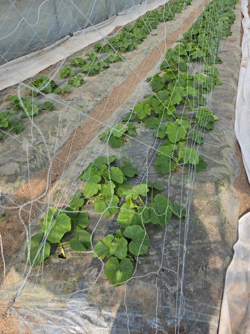 단호박 밑가지 쳐주고 타고올 라갈 그물쳐주기 하였답니다