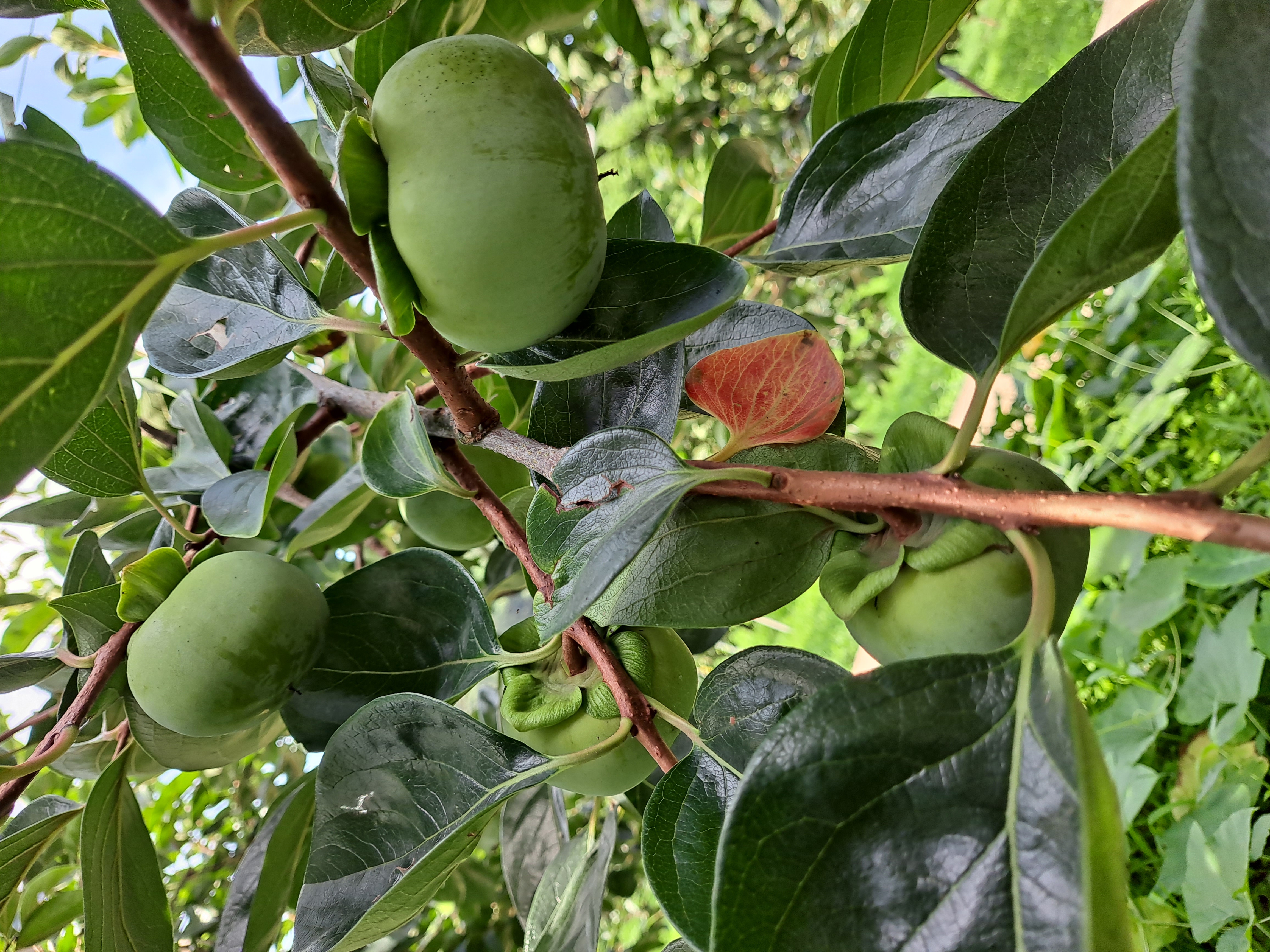 날씨가 폭염이라. 오늘 썬블럭. 살포 했네요 워낙 날씨가 더운관계로 약간 하늘 보고 고개 들고 있는 감 약간 익어 가고 있네요