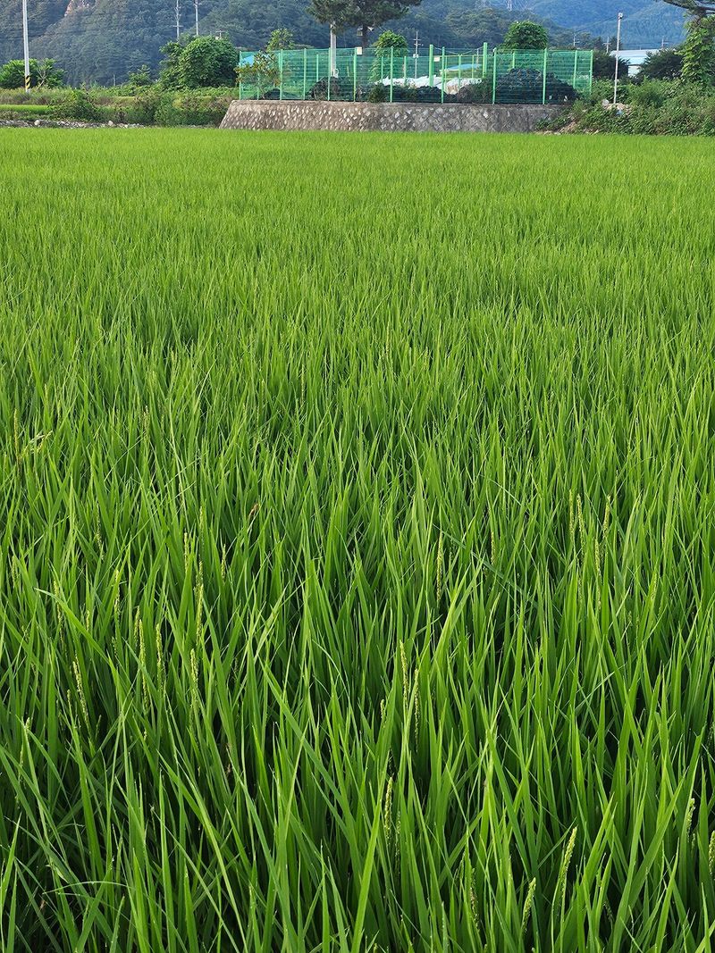 벼가 벌써 이삭이 나오기 시작을 하네요 5월9일날 심에서 수확은 9월20일경 할예정 입니다 품종은 해들 이라는 품종 으로서 중생종에 속합니다
