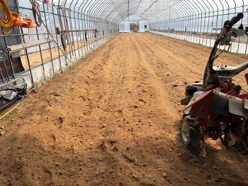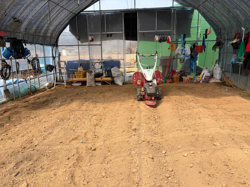 하우스 고추비료 살포하고 로타리 침