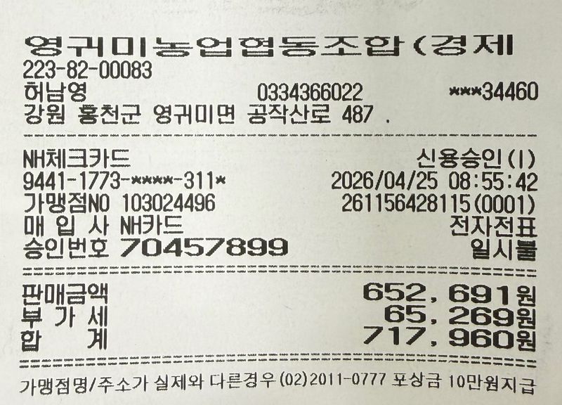 청양고추 100 x 500 = 50000원 일반(왕조) 350 x 500 = 175000원 오이 30 x 500 = 15000원 애호박, 꽈리고추, 아삭이고추, 노각오이, 작두콩, 가지등 총 210,900원