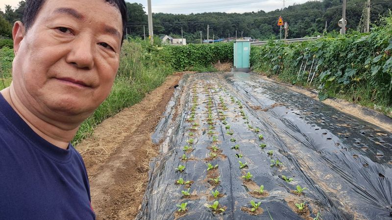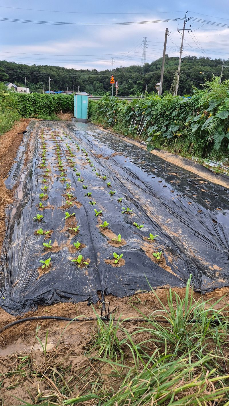 지난주 일요일날 로타리 치고. 비닐 작업하고 오늘은 24년 9월1일 김장배추. 김장 무. 쪽파. 식재 했다 고추도 5번째 따니 고추 양이 줄었다