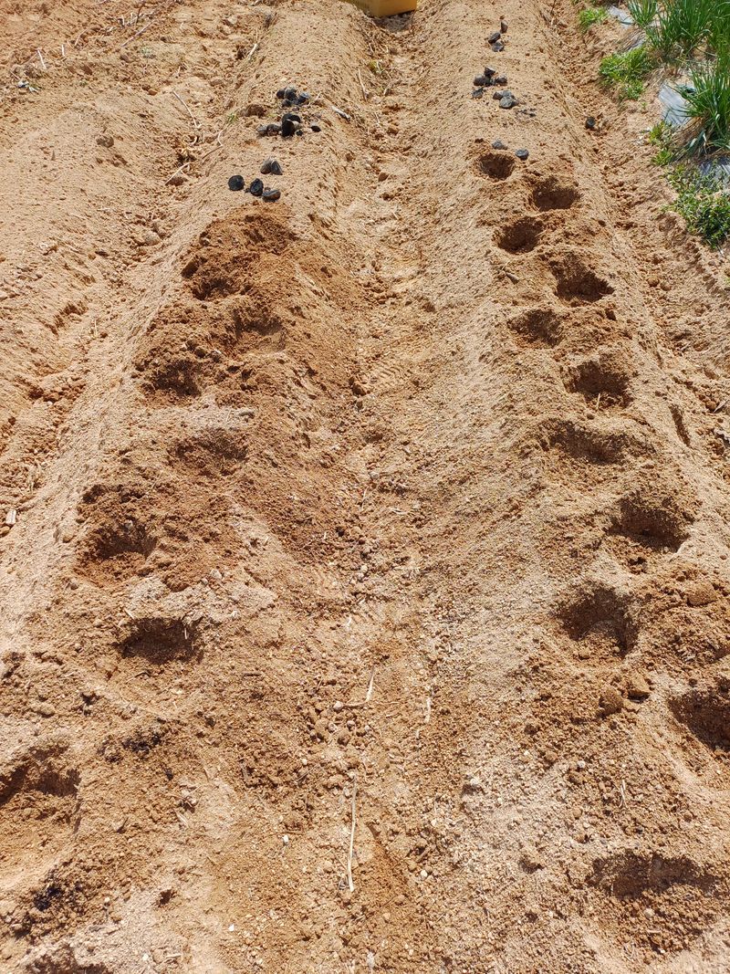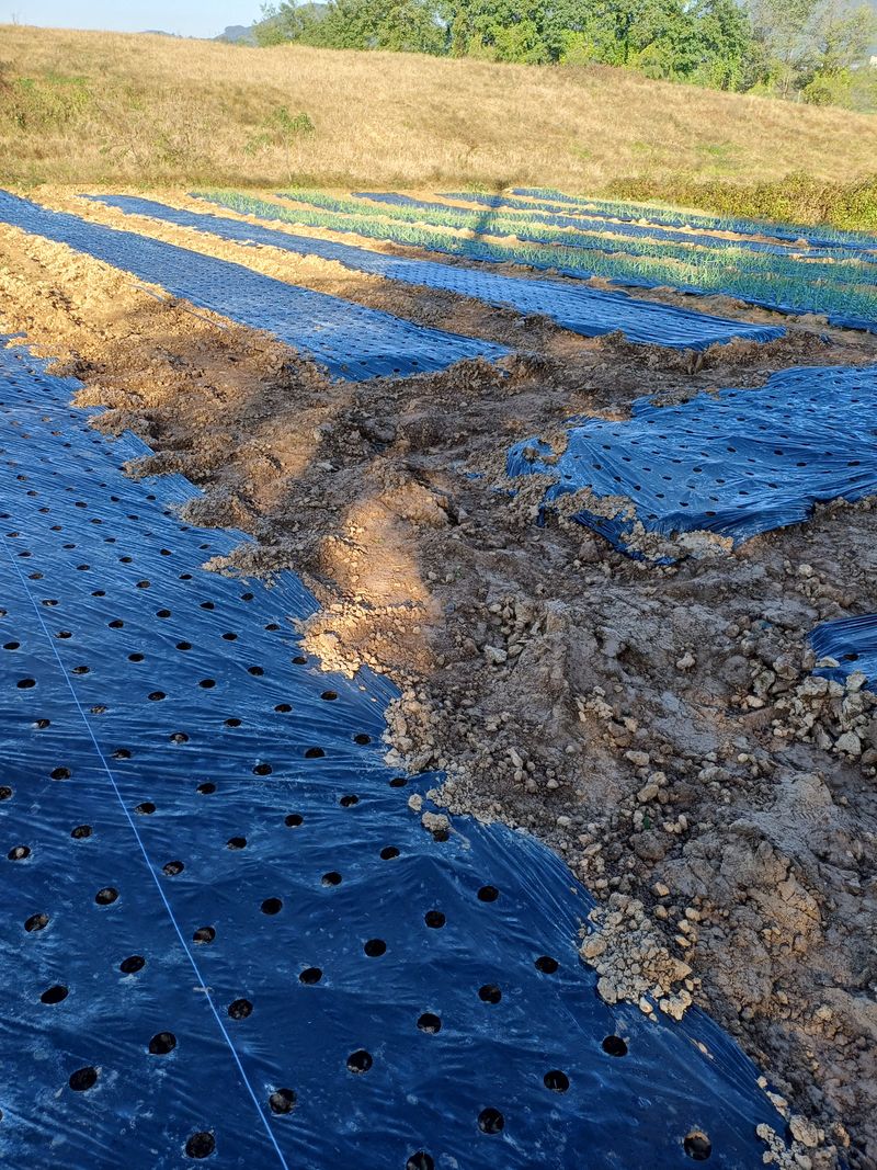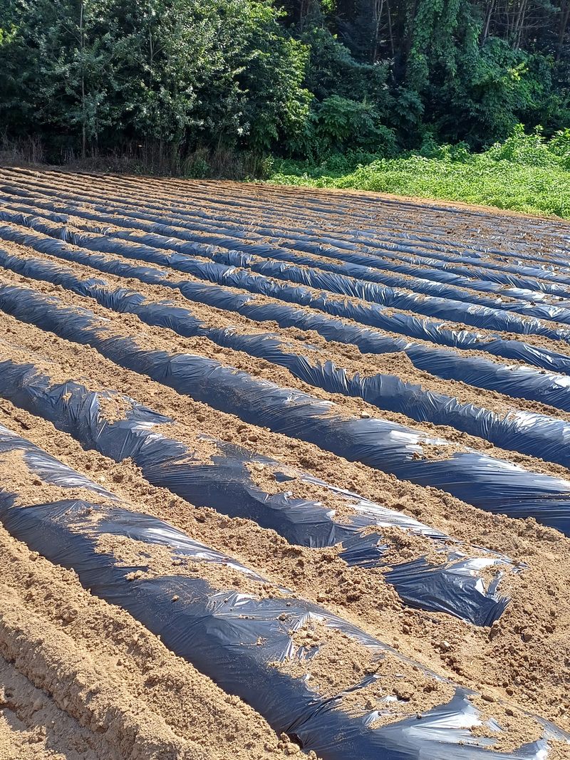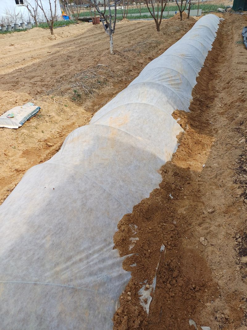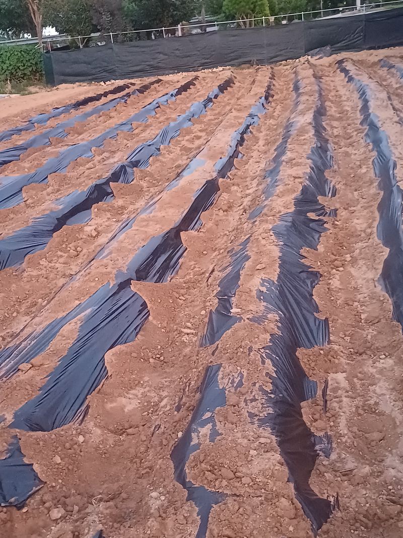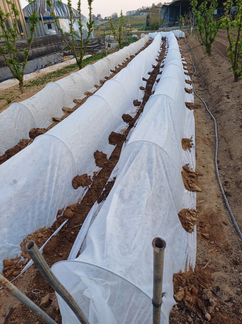 생강 한줄 파종 1.2키로 사와서 모두싹 .락스로 소독후 파종.집으로 덮어주고 부직포로 고정완료!