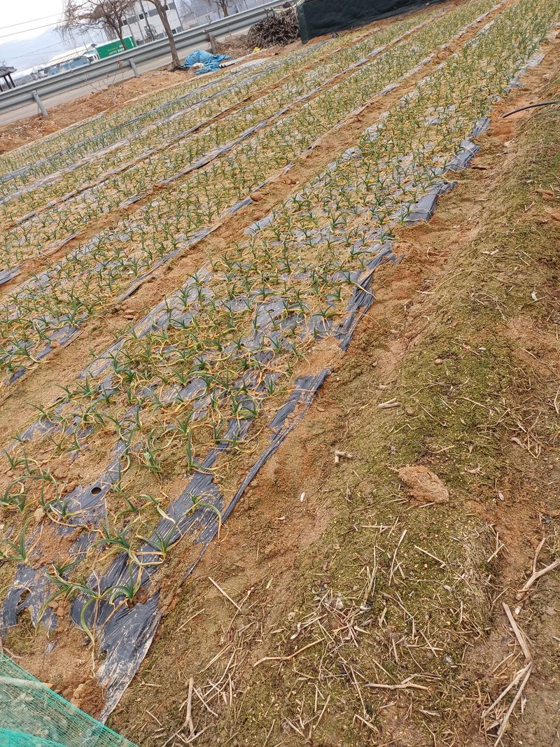 마늘 양파 부직포 걷은후 1차 요소 추비완료