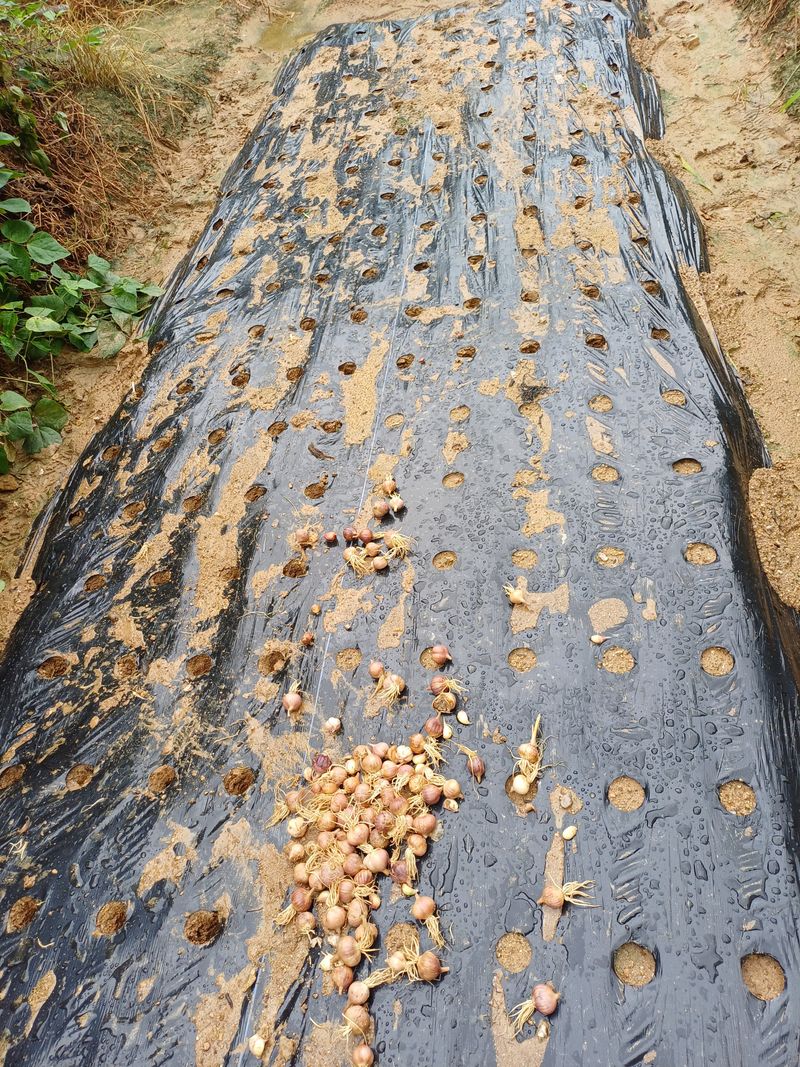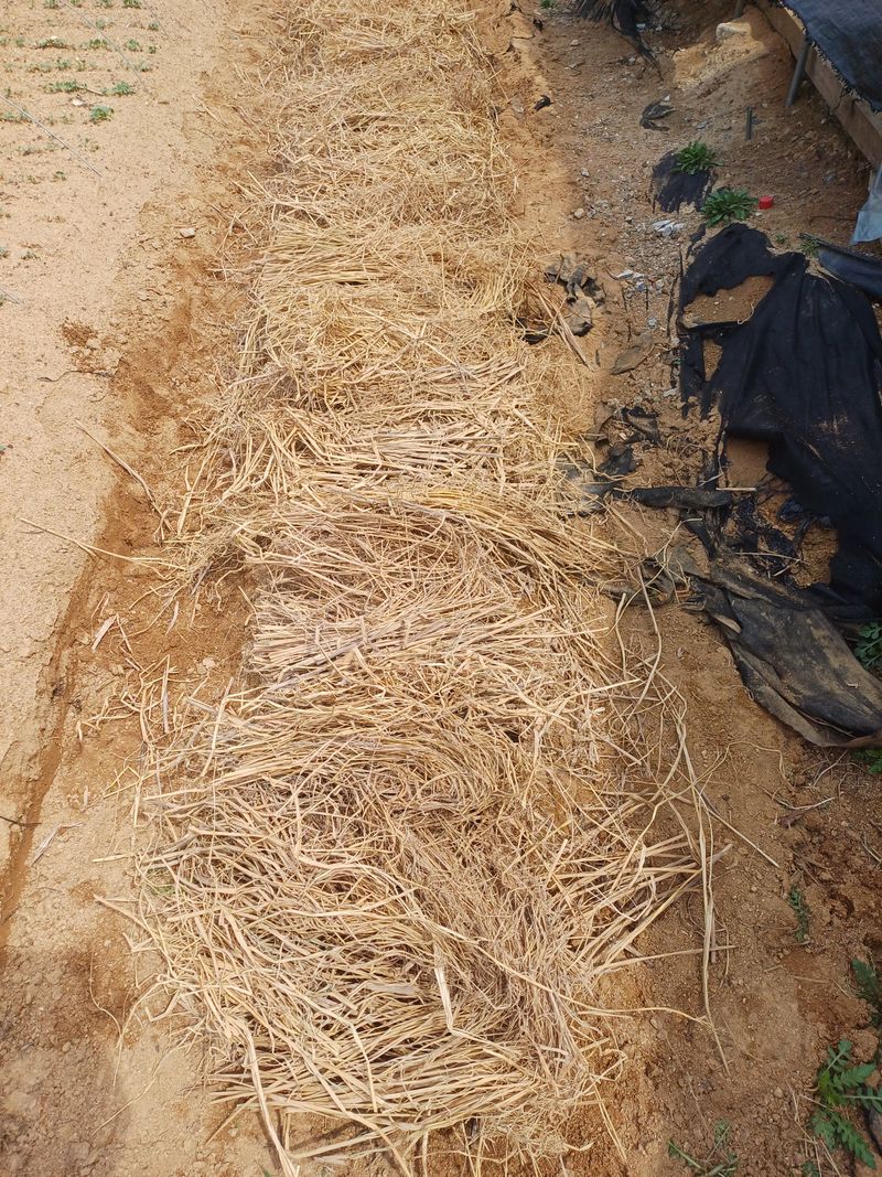 토란 정식 완료 20센티 간격으로 심어주고 볕짚으로 덮고 최종부직포로 멀칭